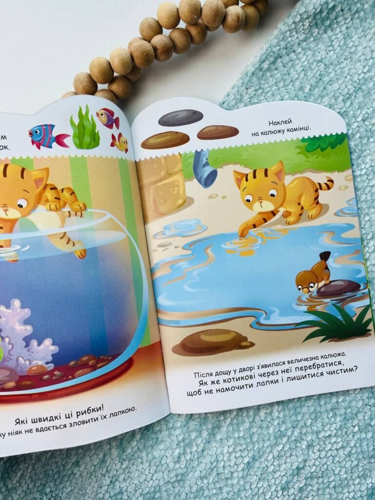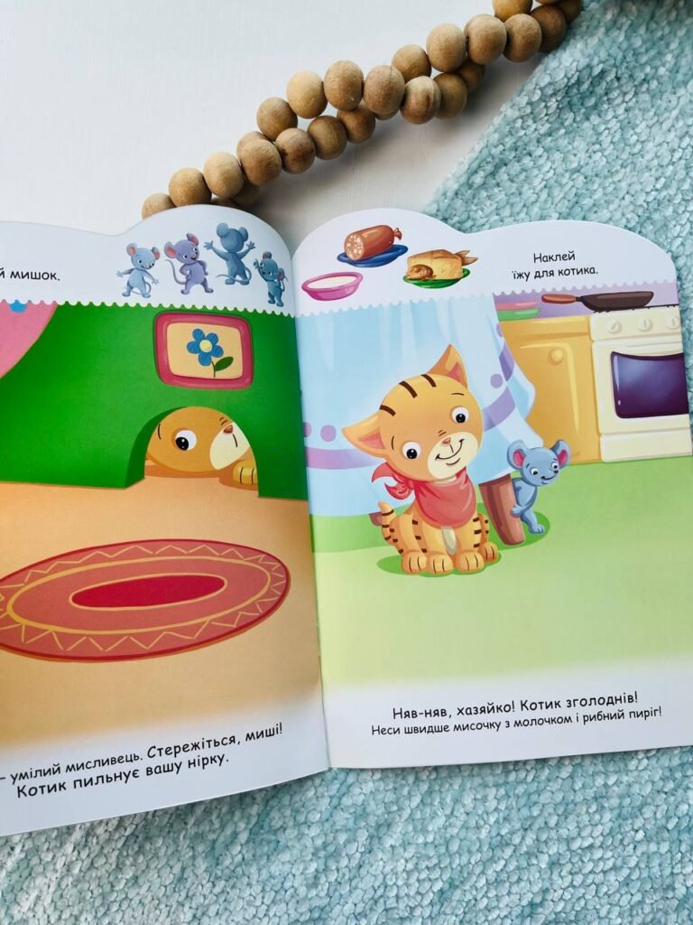 Ваша дитина любить тварин? А наліпки? У книжці вона знайде і те, й інше! Короткі прості сюжети про котика, великі барвисті наліпки, якими малюк доповнить картинки, — з цією книжкою час промайне цікаво й весело! Завдяки багаторазовим наліпкам дитина може щоразу створювати нову картинку і придумувати свою історію.