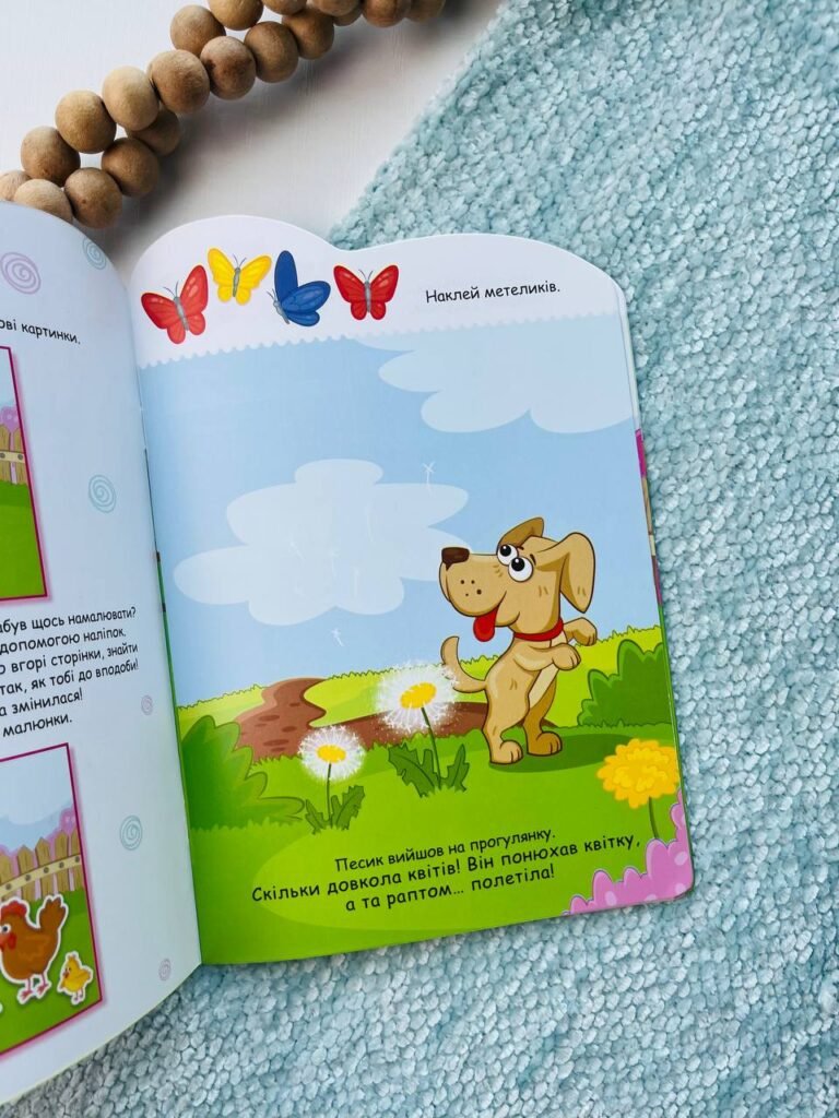 Ваша дитина любить тварин? А наліпки? У книжці вона знайде і те, й інше! Короткі прості сюжети про песика, великі барвисті наліпки, якими малюк доповнить картинки, — з цією книжкою час промайне цікаво й весело! Завдяки багаторазовим наліпкам дитина може щоразу створювати нову картинку і придумувати свою історію.