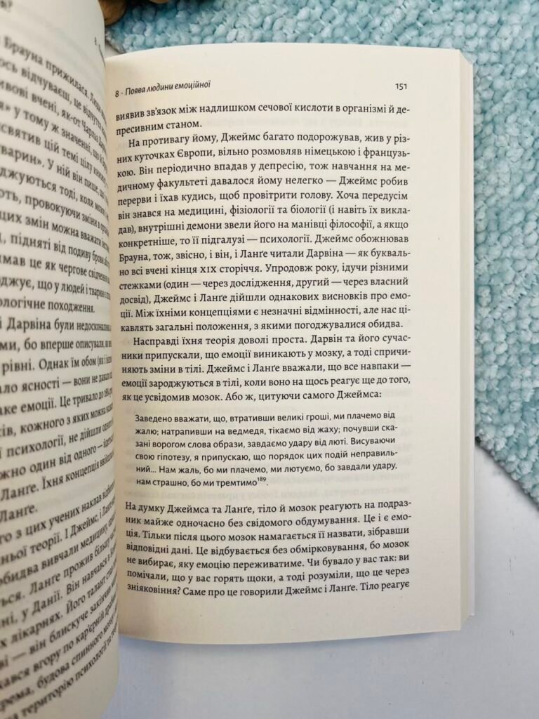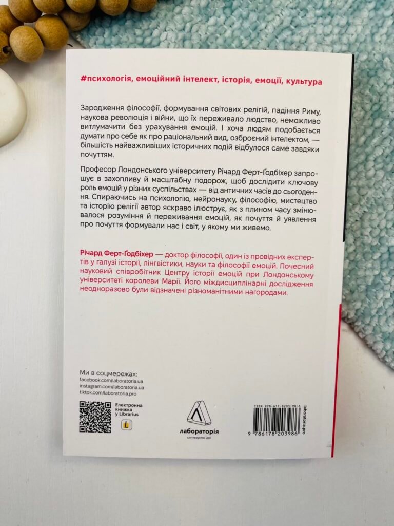 Спираючись на психологію, нейронауку, філософію, мистецтво та історію релігії, Річард Ферт-Ґодбіхер яскраво ілюструє, як наше розуміння та емоційний досвід змінювалися з часом і як наші почуття формували нас і світ, у якому ми живемо. Від Стародавньої Греції до Африки, від Японії до Османської імперії й аж до Сполучених Штатів — це захоплива мандрівка неосяжним, але дуже емоційним світом.