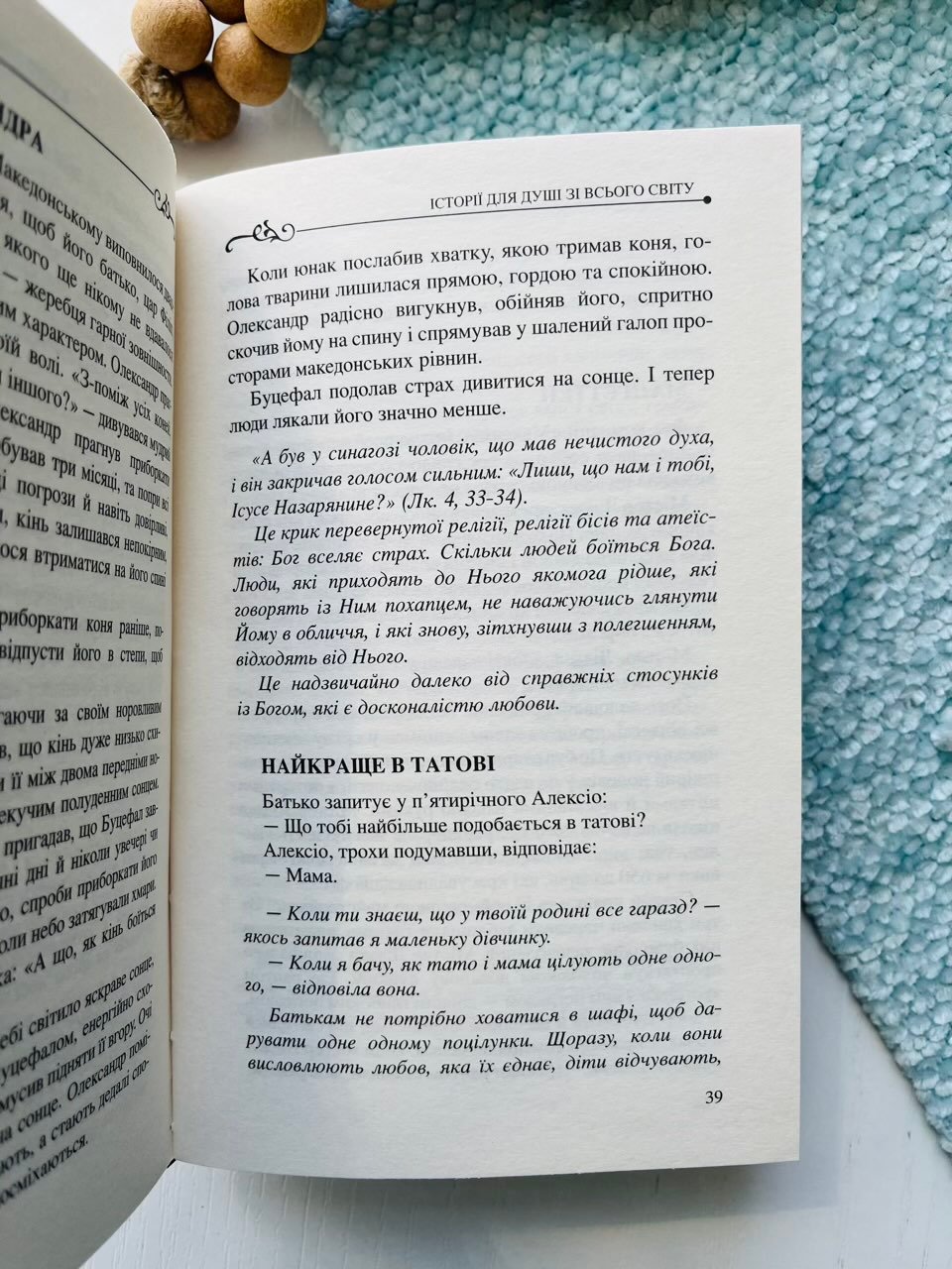 Ці історії читаються серцем. Вони – мов добрий світильник, що тихо освітлює шлях душі. Від Італії до Японії, від Африки до Південної Америки – кожна історія відкриває новий промінь Божої мудрості, яка діє в усьому світі. У наш непростий час неквапливе читання цих оповідок є нагодою віднайти мир і спокій в душі, відшукати гармонію і зосередитися на власній, особистій історії.