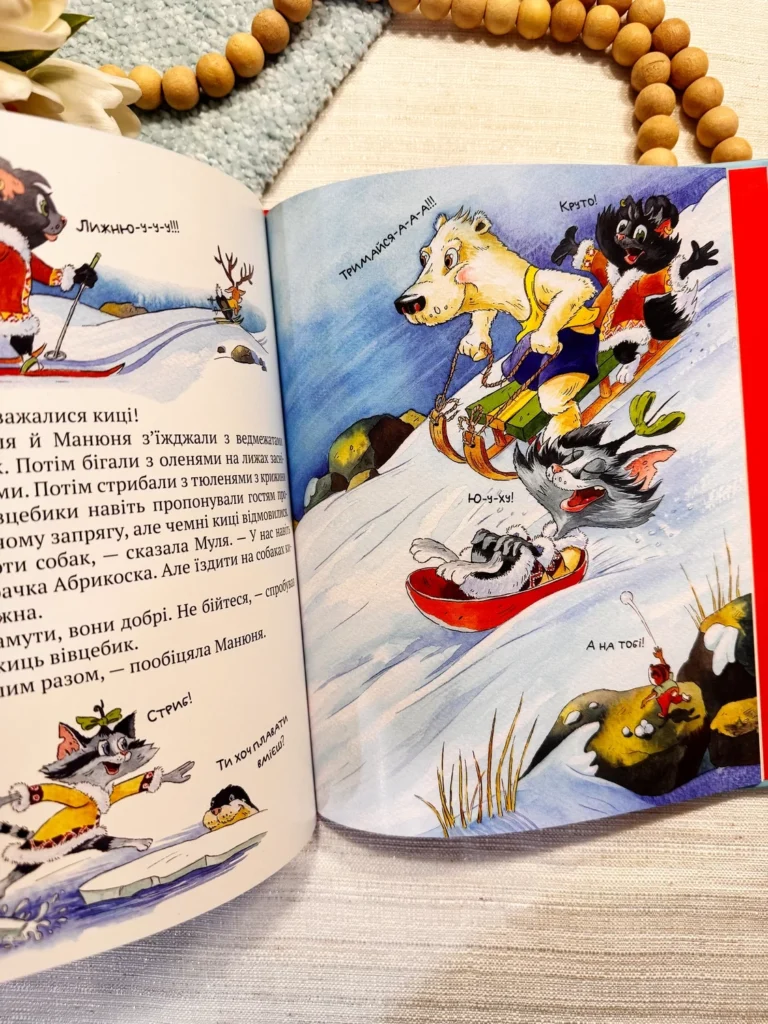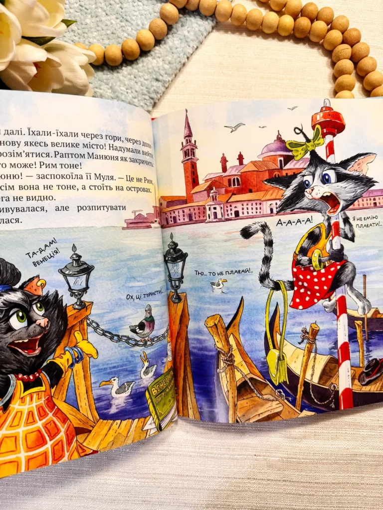 Киці Муля і Манюня так люблять мандрувати! Не подумайте, що на сусідню вулицю, ні! До інших країн! І в кожній з кицями стаються неймовірні пригоди. Хочете помандрувати разом з ними? Читайте про Мулю і Манюню в Італії, Гренландії та Фінляндії!
