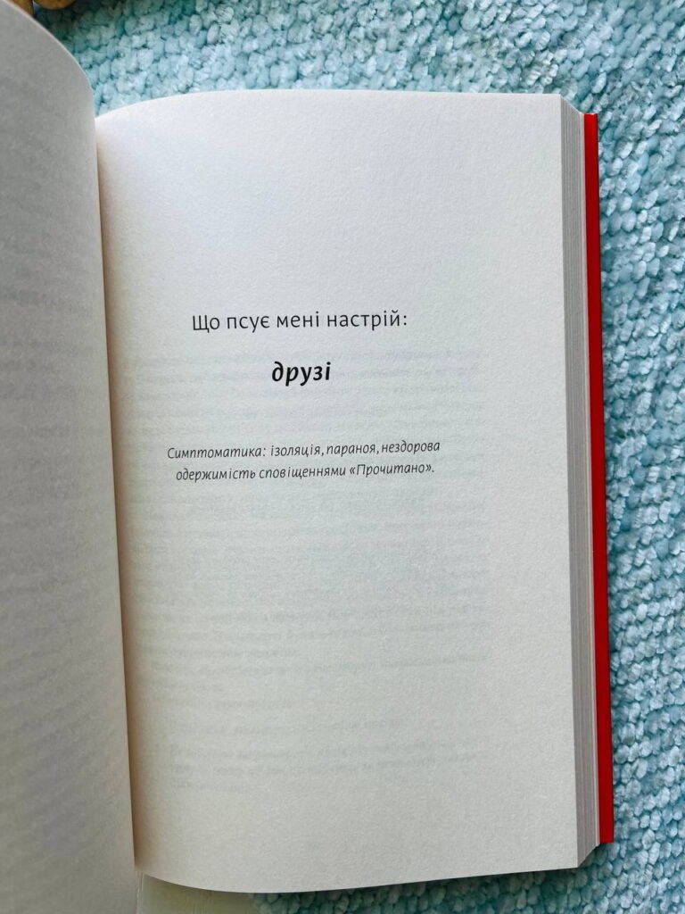 Крізь призму власного сприйняття, залучаючи літературу, філософію, гумор та науку, авторка розбирається в причинах перепадів настрою та показує спосіб, як приборкати негативні емоції та повернути радість життя.