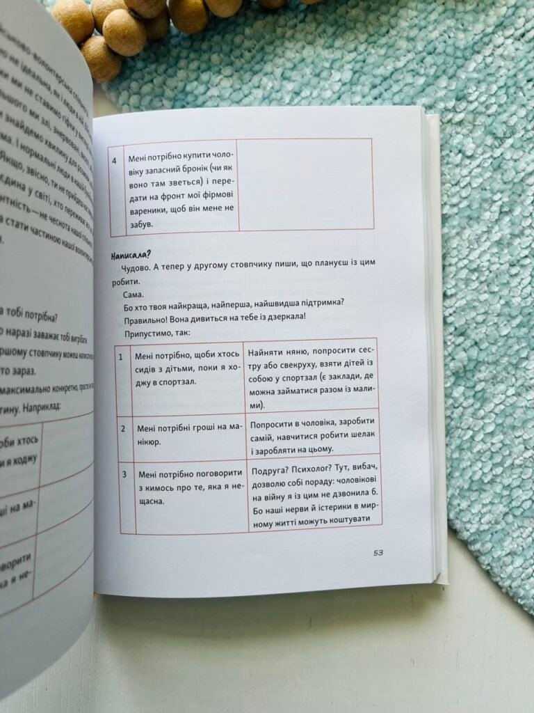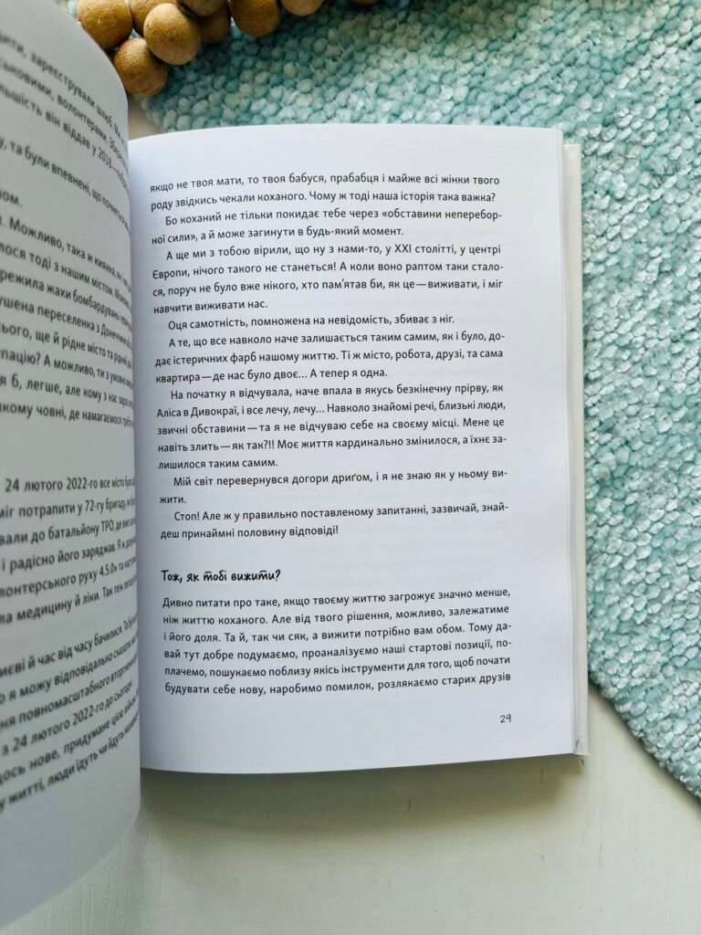 Цю книгу написала жінка, яка на вашому боці та в одному з вами човні. «Книга обіймів» — рука подруги, добрі обійми, сказані в потрібний момент слова. Написана з любов’ю, гумором, великою повагою і ніжністю. Вона може стати тим рятувальним кругом, за яке ми чіпляємося в моменти зневіри.