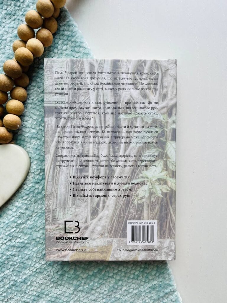 Книга «Коли життя стає руїнами» — про всіх нас. Як ми можемо жити своїм життям, коли здається, що все навколо ламається, зникає і псується, коли нас постійно долають страх, тривога й біль? На думку Пеми Чодрон, не потрібно втікати й ховатися від того, що приносить нам негатив. Ба навпаки — нам варто рухатися назустріч йому, й тоді зближення з тригерами може допомогти нам впоратися з ними у спосіб, якого ми ніколи раніше навіть не уявляли. Спираючись на традиційну буддійську мудрість, вона пропонує інструменти, що змінюють життя, бо допомагають перетворити страждання й негатив на легкість, радість і впевненість.