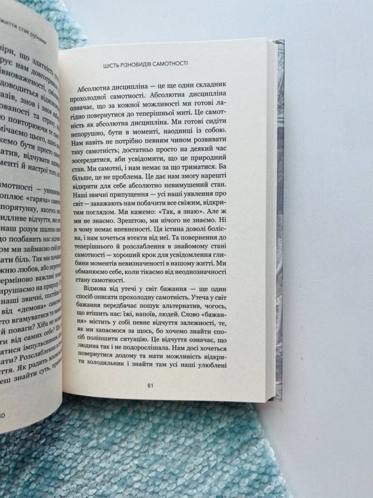 Авторка цього вже класичного бестселера працювала вчителькою і виховувала трьох дітей. Та якось вона зрозуміла, що не відчуває гармонії, однак дуже потребує її, і стала буддійською черницею. Це допомогло їй віднайти рівновагу у світі, в якому все не так.