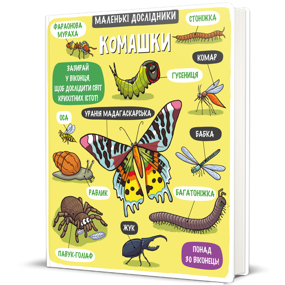 Видавництво #книголав продовжує досліджувати світ разом із юним читачам та серією «Маленькі дослідники». Чергова новинка розповідатиме діткам про комашок: хто вони такі, скільки їх існує, які вони бувають та багато іншого. «Комашки» – це сьома книжка із серії «Маленькі дослідники» у видавництві #книголав. Перше видання «Моє дивовижне тіло» стало абсолютним бестселером і поповнило домашні бібліотеки біля 30 000 українців, разом із ним до лідерів увійшли: «Світ тварин», «Динозаври», «Космічний світ», «Підводний світ» та «Транспорт». Як і в інших книжках серії «Маленькі дослідники», у «Комашках» є понад тридцять віконець, які на кожній сторінці видання приховують свої цікавинки і розповідають про світ крихітних істот. Завдяки виданню, дитина довідається, як малі створіння об’єднуються задля великої праці, і яких комах можна знайти неподалік, а також які переваги є у того чи іншого виду та чому дзижчання комах не вщухає ні вдень, ні вночі.