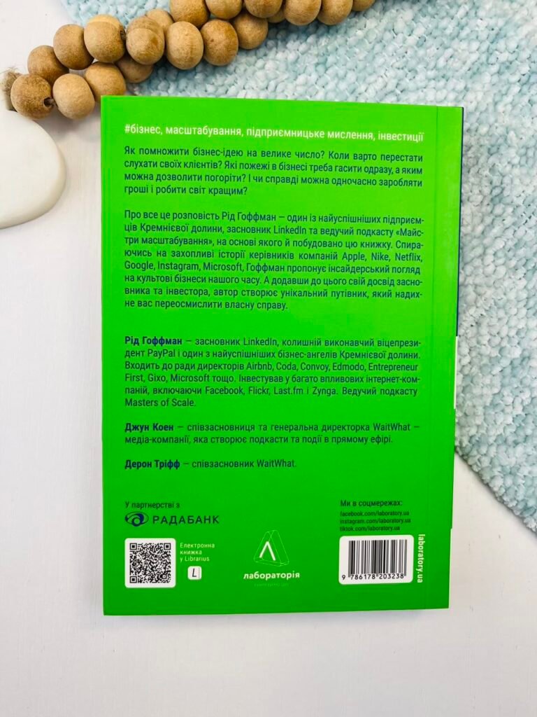У ній вміщені інтерв’ю із лідерами знакових компаній, включаючи Apple, Nike, Netflix, Spotify, Starbucks, Google, Instagram і Microsoft, а також з тими підприємцями, які тільки розпочинають свій шлях, але вже встигли гучно заявити про себе сміливими стартапами — 23andMe, TaskRabbit, Black List і Walker&Co. Додаючи до цього власний досвід засновника та інвестора, Рід Гофман створює унікальний посібник, який надихне вас переосмислити власну справу.
