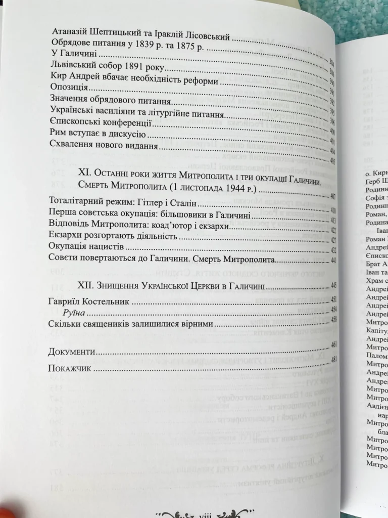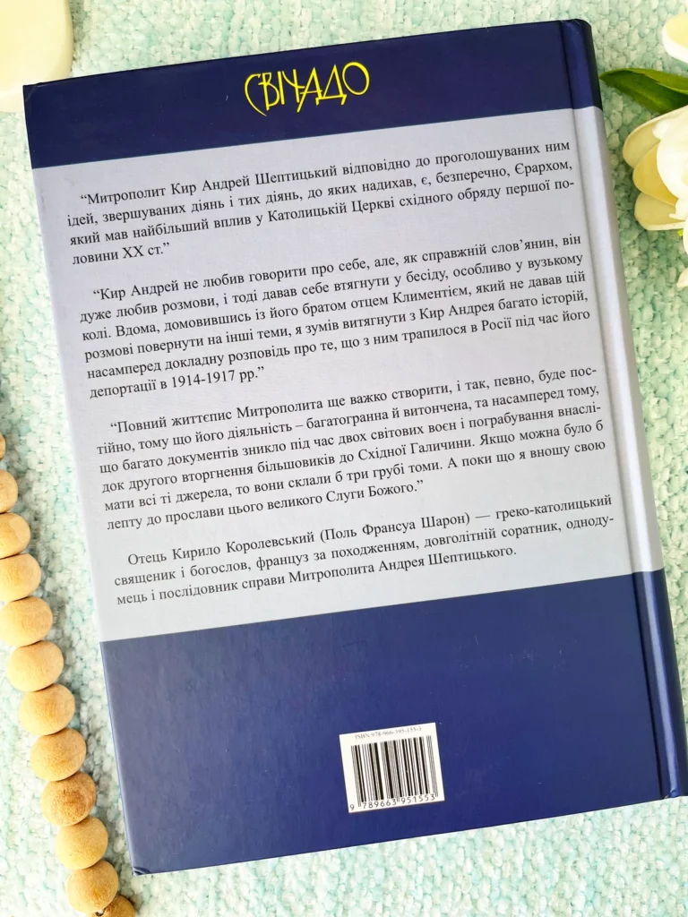 Допитливий і вдумливий читач знайде чимало нового і повчального в захопливій розповіді про Кир Андрея Шептицького – Глави УГКЦ, суспільного діяча, інтелектуала, мецената – на широкому родинному, релігійно-церковному та історичному тлі.