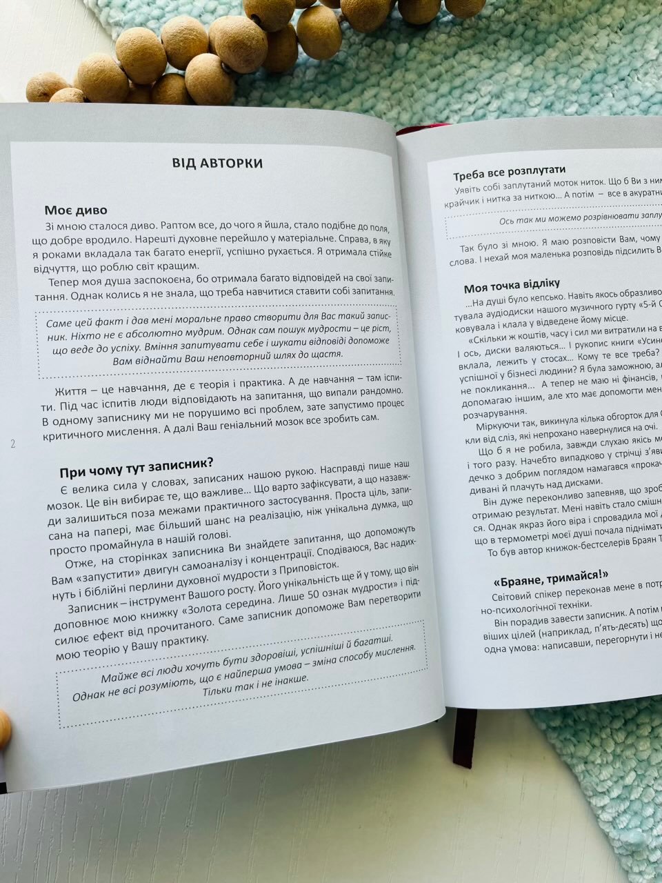 Цей записник заохочує брати відповідальність за власне життя, фіксувати думки, наміри та кроки до змін. Через письмові практики читач спостерігає, як духовна робота над собою знаходить відображення в реальному, матеріальному світі — у справах, виборах і відчутті щастя.