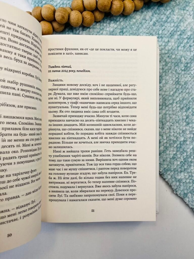 «Мова речей» — у формі щоденника, писаного в еміграції. Пізнання світу через символічне значення речей — яке воно? Кожна придбана річ чи отриманий подарунок — це певний сенс і символ, який може багато розказати. Чи знайде героїня серед цих речей приховані сенси, важливі для неї?