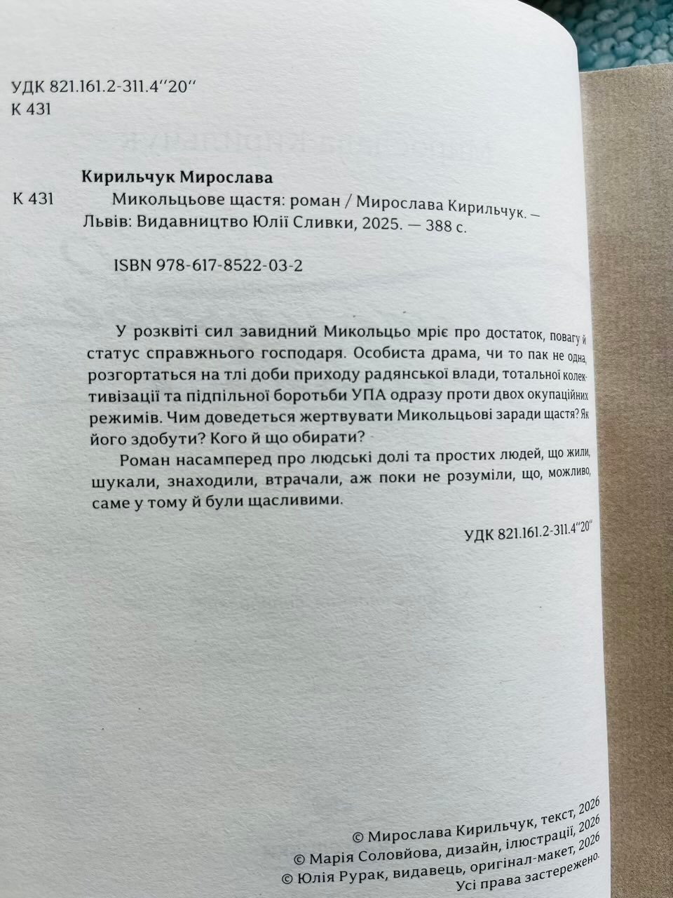 У розквіті сил завидний Микольцьо мріє про достаток, повагу і статус справжнього господаря. Особиста драма чи то пак не одна розгортаються на тлі доби приходу радянської влади, тотальної колективізації й підпільної боротьби УПА одразу проти двох окупаційних режимів. Чим доведеться жертвувати Микольцьові заради щастя? Як його здобути? Кого й що обирати? Роман насамперед про людські долі й простих людей, що жили, шукали, знаходили, втрачали, аж поки не розуміли, що, можливо, саме у тому й були щасливими.
