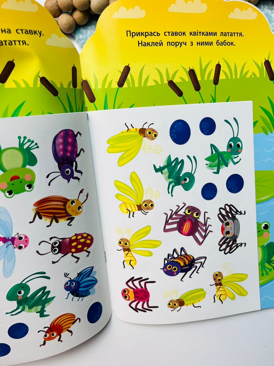 «Наліпки для малят. Метелик» — це весела й пізнавальна книжка, яка познайомить малюка з різноманітними комашками, зокрема метеликами. Виконуючи прості завдання за допомогою яскравих наліпок, дитина розвиває фантазію, логічне мислення та дрібну моторику пальців рук.