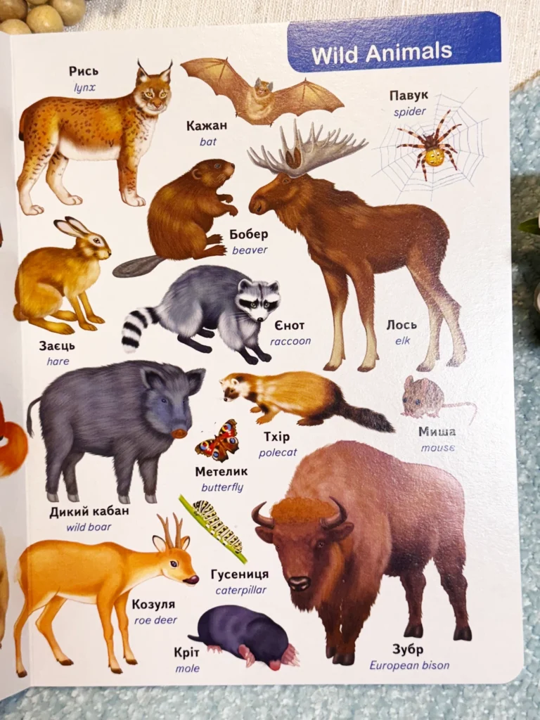 Яскраві ілюстрації: тварини зображені чітко і зрозуміло, що робить навчання цікавим і захоплюючим для дітей.