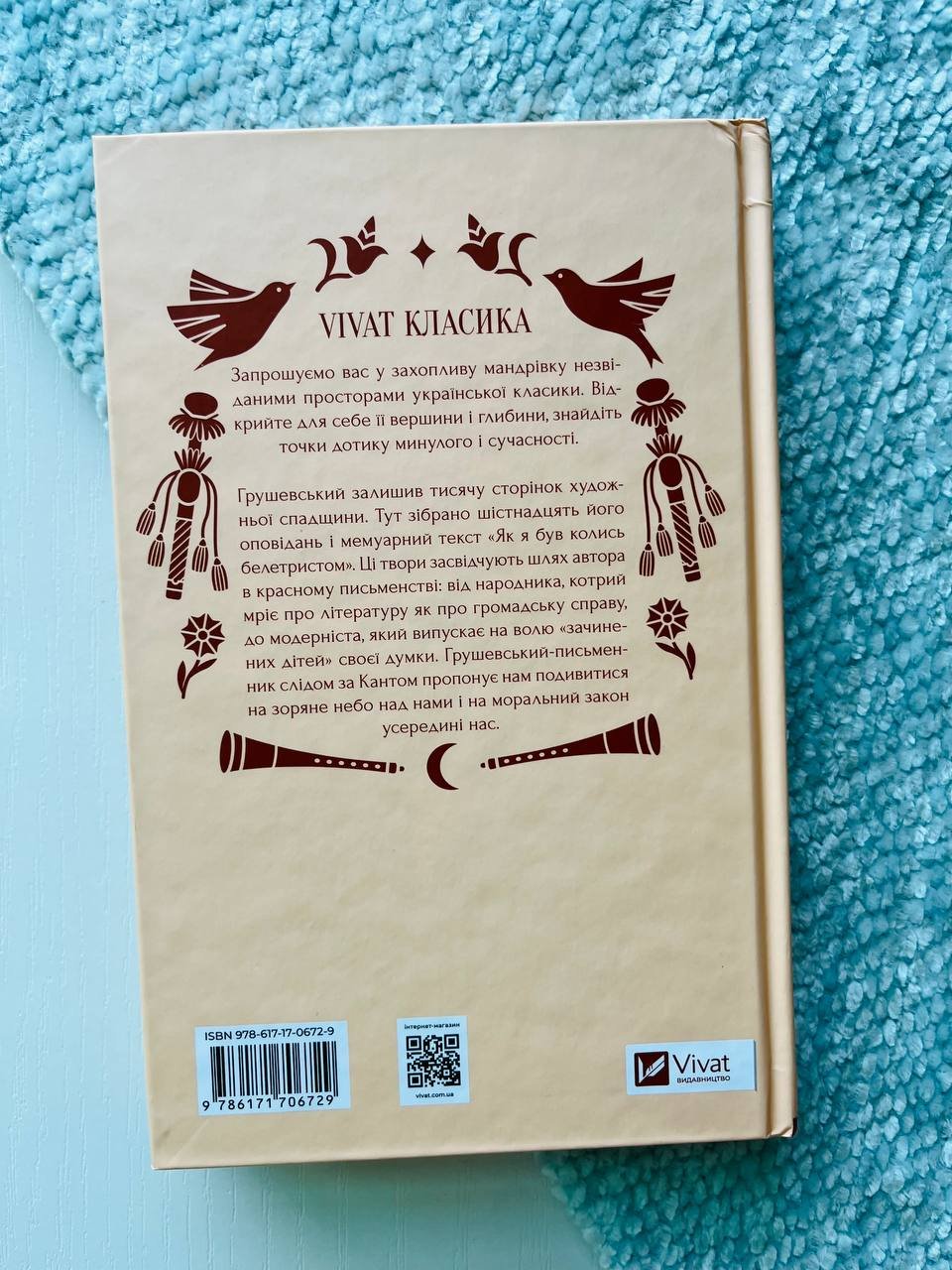 Грушевський залишив тисячу сторінок художньої спадщини. Тут зібрано шістнадцять його оповідань і мемуарний текст «Як я був колись белетристом». Ці твори засвідчують шлях автора в красному письменстві: від народника, котрий мріє про літературу як про громадську справу, до модерніста, який випускає на волю «зачинених дітей» своєї думки. Грушевський-письменник слідом за Кантом пропонує нам подивитися на зоряне небо над нами і на моральний закон усередині нас.
