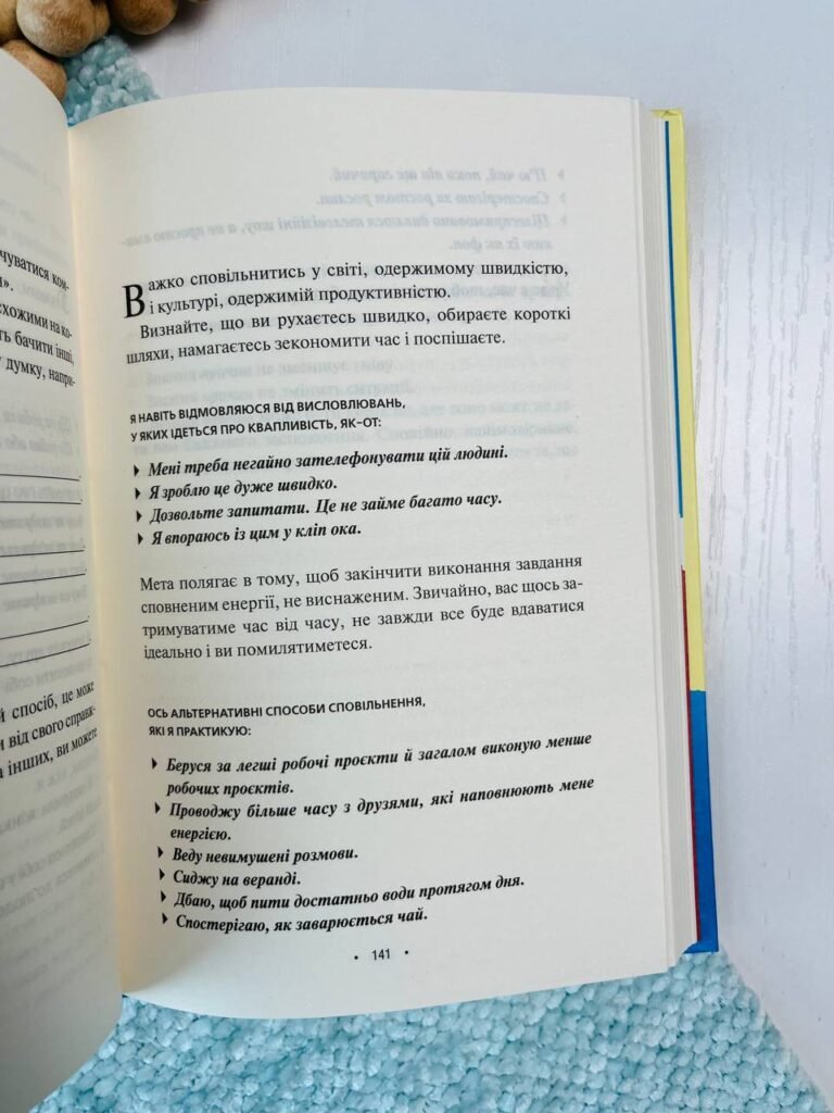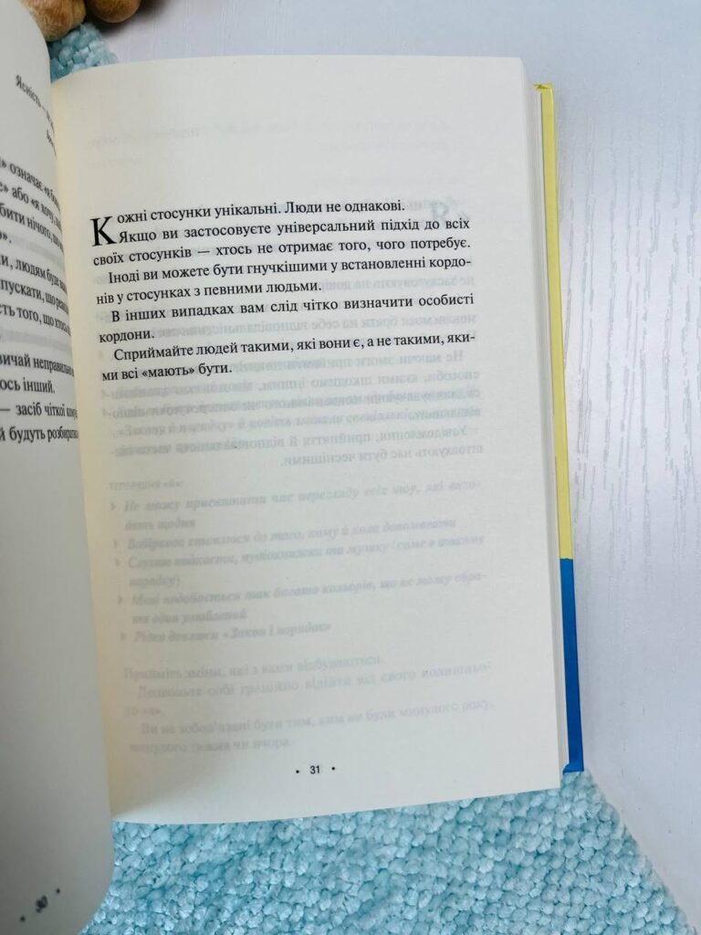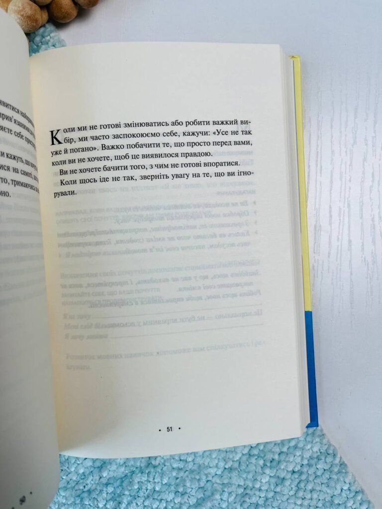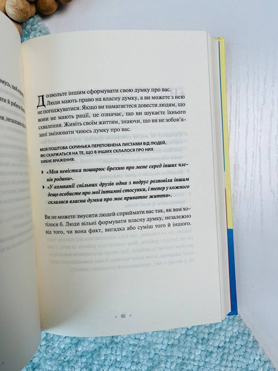 У цій збірці ідей для щоденного обмірковування психотерапевтка допомагає навчитися встановлювати кордони, висловлювати свої почуття з ясністю і чесністю, уникати зайвої драми та знаходити радість у простих моментах.