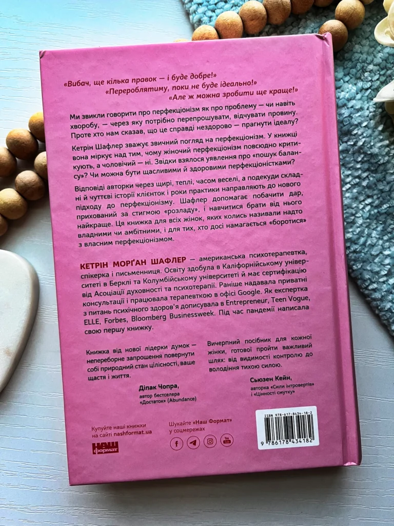 Відповіді авторки через щирі, теплі, часом веселі, а подекуди складні й чуттєві історії клієнток і роки практики направляють до нового підходу до перфекціонізму.