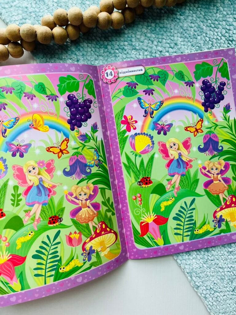 Завдання на уважність: Книжки серії мають різноманітні вправи, де дитина повинна знайти відмінності між двома картинками або повторити певний елемент, що вимагає уважного спостереження.