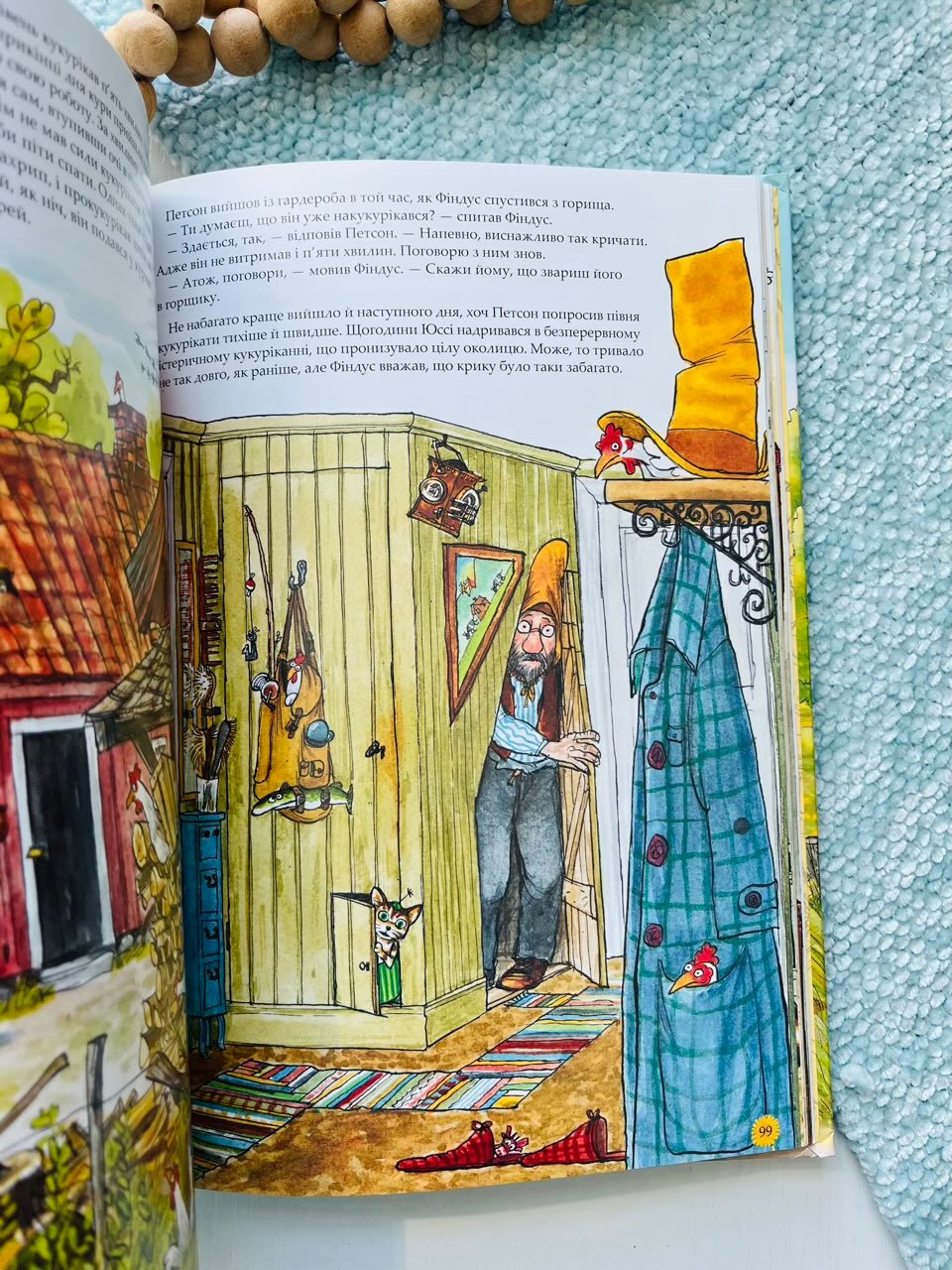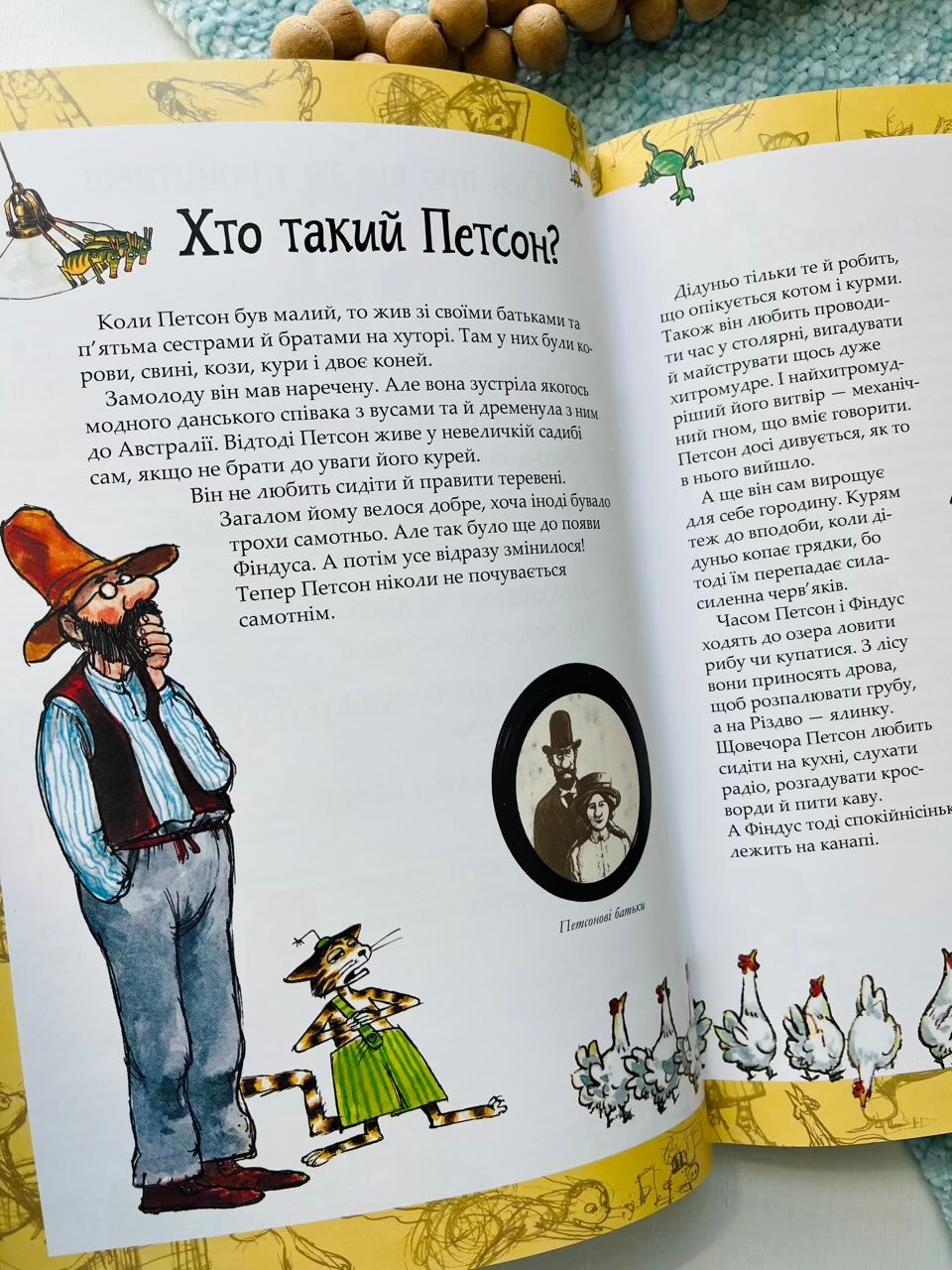 У цій книжці зібрано п’ять популярних історій, героями яких є Петсон і Фіндус. Гортаючи її сторінки, ти зможеш не тільки більше дізнатися про своїх улюблених персонажів, а й навчитися власноруч робити цікаві та корисні речі. А ще ти прочитаєш про людину, яка придумала й намалювала цих героїв, і навіть побачиш авторські ескізи та зрозумієш, як створювались ілюстрації. Книжка сподобається всім, кого захоплюють пригоди Петсона і Фіндуса, а надто тим шанувальникам творчості Свена Нордквіста, які не втомилися від веселих витівок мишустиків та винахідливого котика.