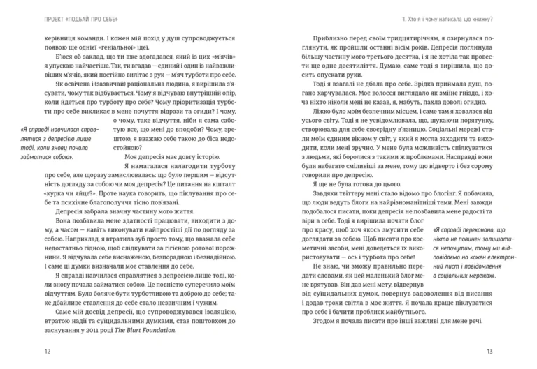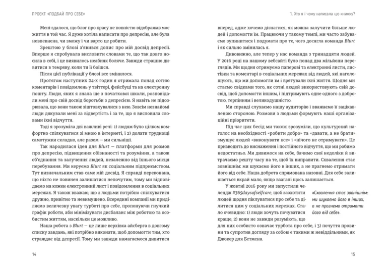 Книга пропонує практичні поради, невеликі вправи та мотивує повірити: ми достатньо хороші вже зараз. Тут немає складних теорій чи порожніх гасел — лише життєві приклади, легкий стиль і теплі слова, які підтримують на шляху до внутрішнього комфорту та гармонії.