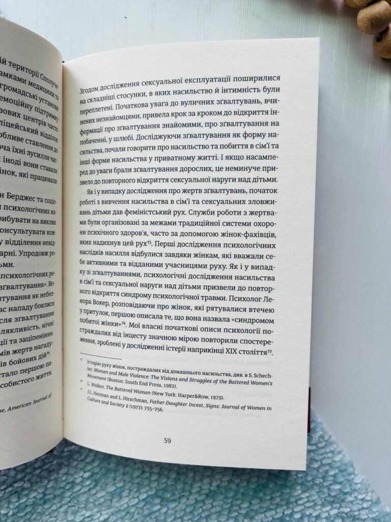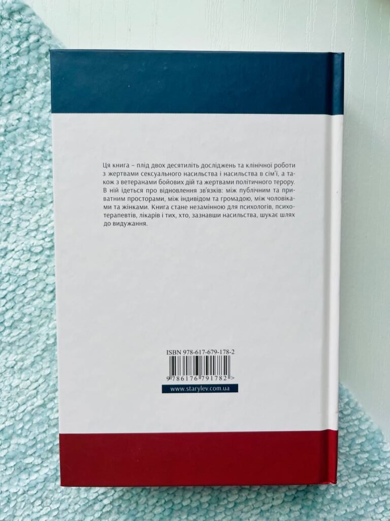 Ця книга – плід двох десятиліть досліджень та клінічної роботи з жертвами сексуального насильства і насильства в сім’ї, а також з ветеранами бойових дій та жертвами політичного терору. В ній ідеться про відновлення зв’язків: між публічним та приватним просторами, між індивідом та громадою, між чоловіками та жінками. Книга стане незамінною для психологів, психотерапевтів, лікарів і тих, хто, зазнавши насильства, шукає шлях до видужання.