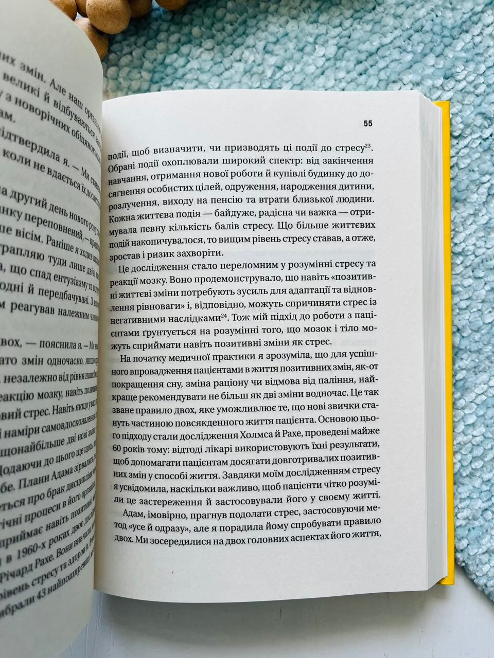 Стрес не означає, що ви маєте слабкий характер і пасуєте перед труднощами. Це природна частина людського існування, здорове біологічне явище, яке допомагає давати раду численним життєвим викликам. Стрес стає проблемою, якщо не узгоджується з темпом життя, що спричиняє вигоряння, втому, порушення сну й багато інших симптомів. Щоб повернути стрес до здорового рівня, авторка пропонує п’ять науково обґрунтованих кроків до перезапуску, які не потребують багато часу й коштів і доступні кожному: