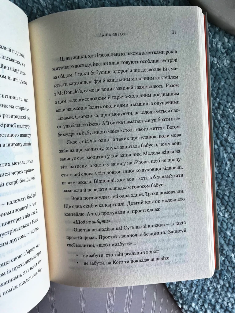 Прісцилла Шаєр торкається неймовірно важливих тем: вашої ідентичності, сім’ї, минулого, про яке ви шкодуєте, того, що вас виснажує, ваших спокус, страхів, вашого ставлення до життя. Кожен розділ цієї книжки викриває жорстокі, детально сплановані проти вас підступи ворога. Але найважливіше – тут ви навчитеся розробляти особисту молитовну стратегію боротьби. Записуючи молитви на відривних картках цієї книжки, ви можете зберігати їх у найзручніших для вас місцях і активно боротися з ворогом через ревну молитву. Бо правда у тому, що перемоги самі не приходять.