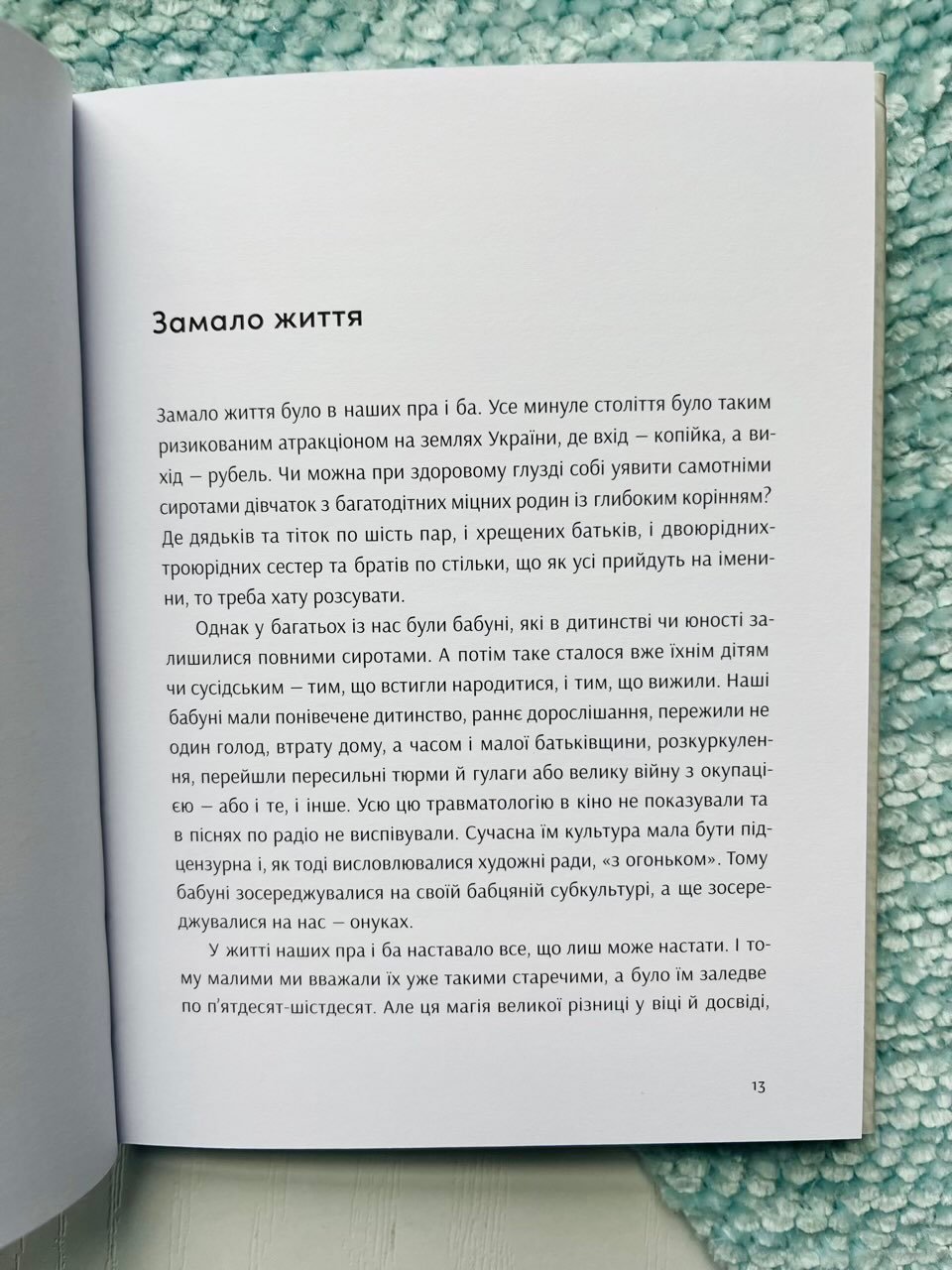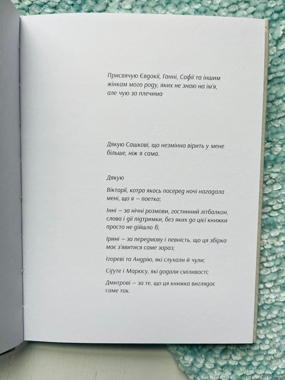 Вірші із цієї збірки написані до початку повномасштабного вторгнення, але війна там присутня — мовчанням, страхом, недопрожитим життям. Інша, з іншими досвідами переселення і втрат, про які не моглося говорити, які хотілося стерти з пам’яті, але вони нікуди не зникали, добували зі своїми носійками до самої старості. І вже вона розмикала їм вуста, гнала розповісти себе, незґрабно, хаотично, бодай для когось.