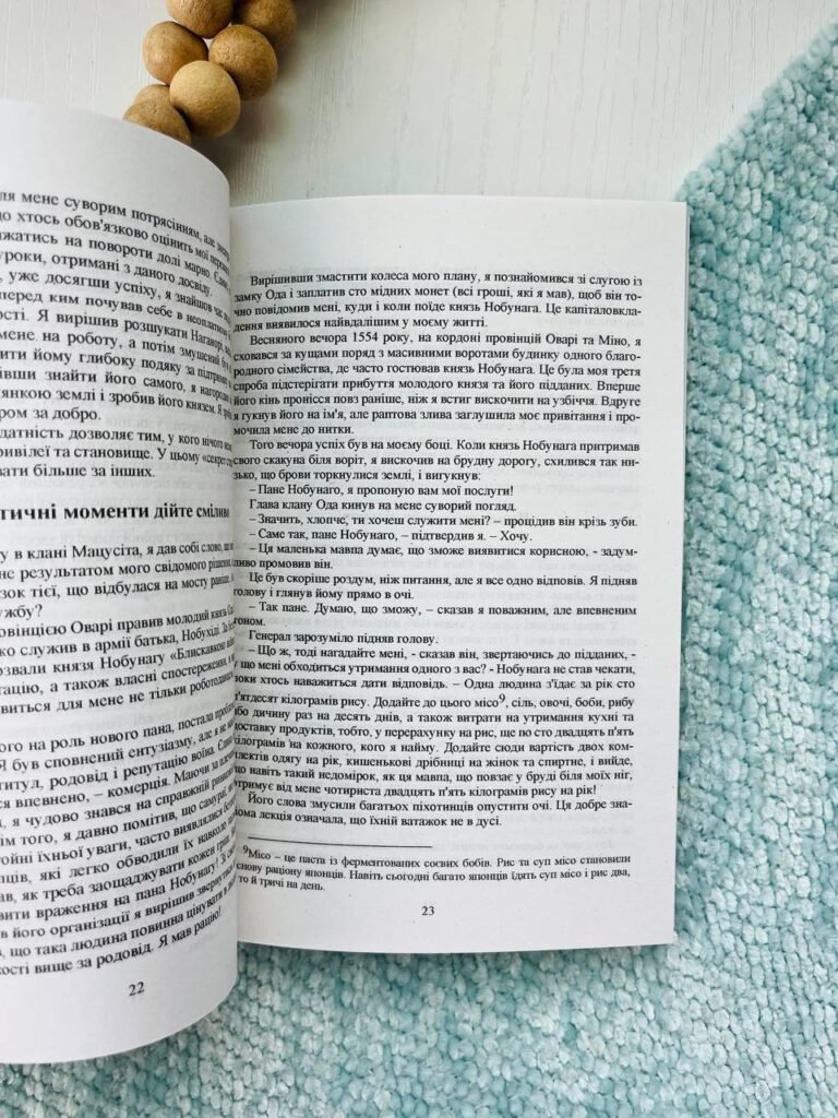 У книзі «Самурай без меча» на прикладі життя Хідейосі, видатного японського військово-політичного лідера, який об єднав окремішні провінції в єдину могутню країну, пройшовши шлях від служки й посівши місце правителя держави, показано, як силою розуму досягнути світу, підвищити продуктивність, згуртувати команду, стати лідером.