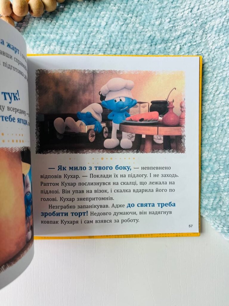 На смурфикiв знову чекають фантастичнi пригоди! Приєднуйся до них! Завітай до селища смурфиків і дізнайся, навіщо Здоровань шукав книгу заклинань у замку Ґарґамеля, чи винайшов Умійко ідеального робота-помічника та як Незграбко опинився на кухні. Читай цікаві історії, написані за мотивами нових епізодів серіалу!