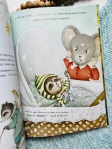 Разом із ним маленькі читачі стрибають з гілки на гілку, шукають звірят і пташенят, розгортають яскраві віконця із сюрпризами, щоб нарешті набути, де сховалося білченя і його друзі, та як готуються до Різдва в цьому чарівному лісі.