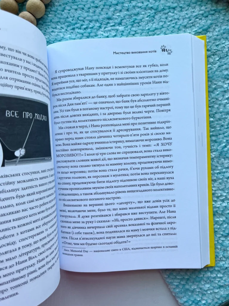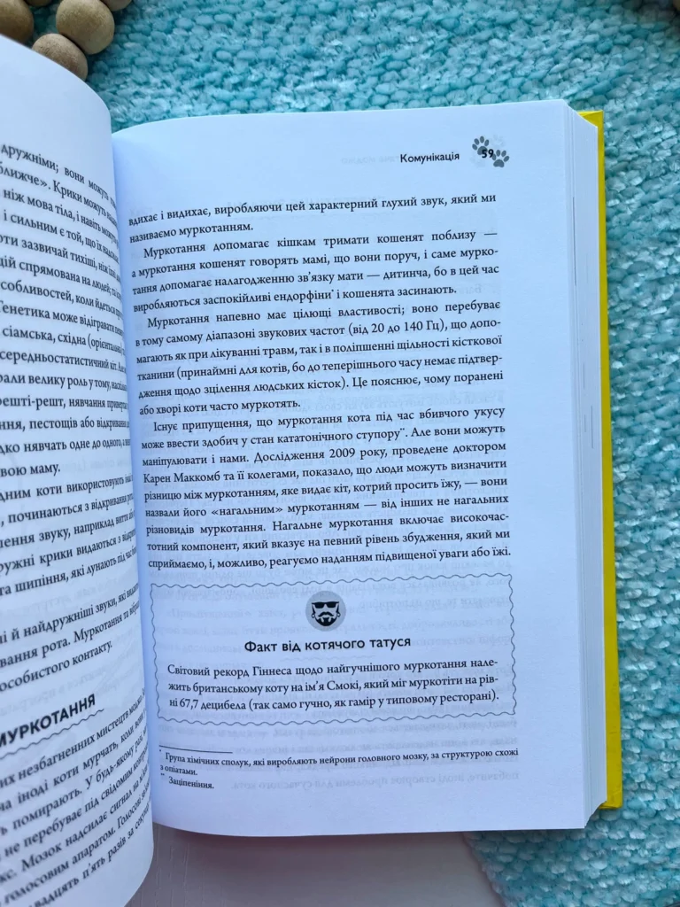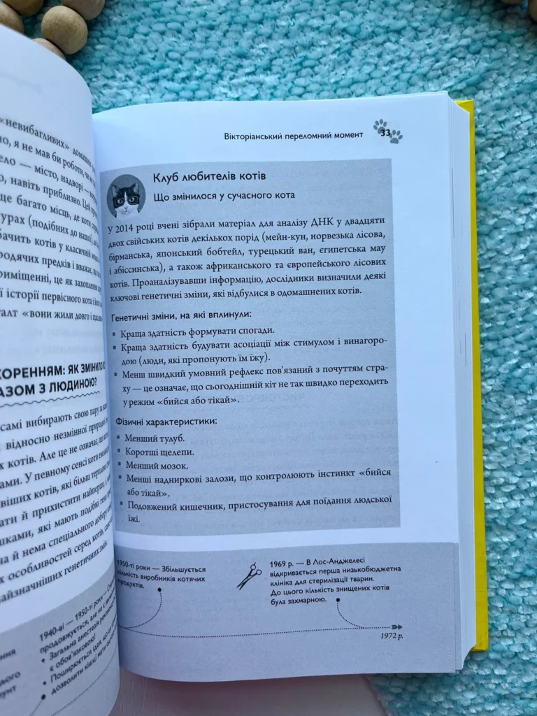 У цій книзі йдеться про те, як налагодити стосунки між котом та іншими членами сім’ї (як людьми, так і тваринами), який раціон буде оптимальним для улюбленця, чому треба облаштовувати котячий простір та знаходити час для ігор, як допомогти коту позбавитися поганих звичок.