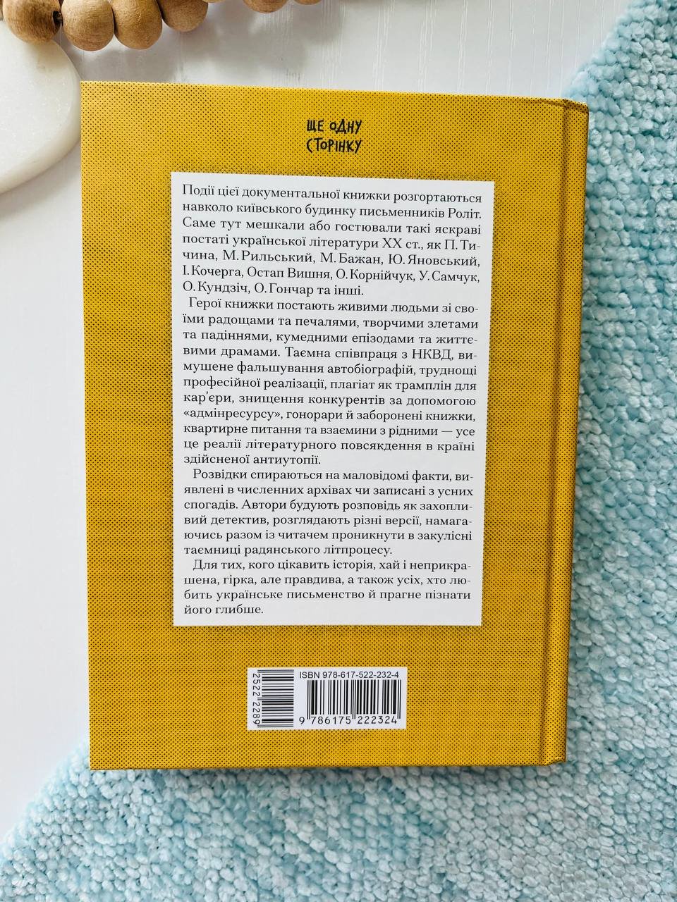 Події цієї документальної книжки розгортаються навколо київського будинку письменників Роліт. Саме тут мешкали або гостювали такі яскраві постаті української літератури ХХ ст., як П.Тичина, М.Рильський, М.Бажан, Ю.Яновський, І.Кочерга, Остап Вишня, О.Корнійчук, У.Самчук, О.Кундзіч, О.Гончар та інші.