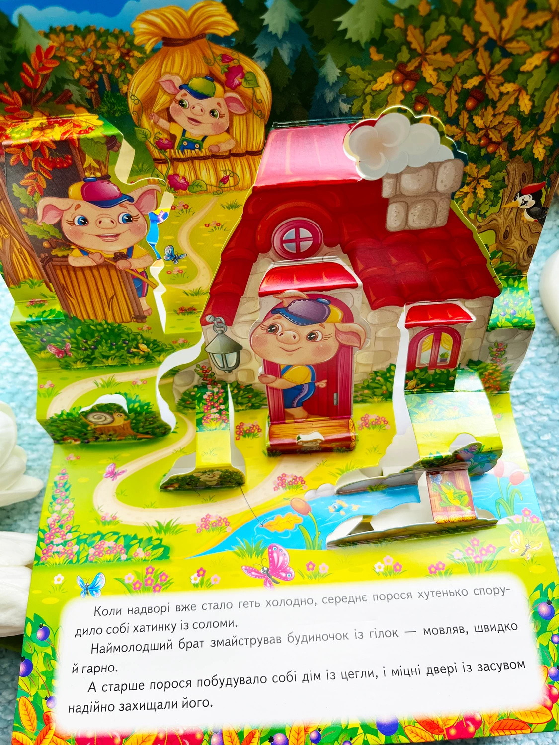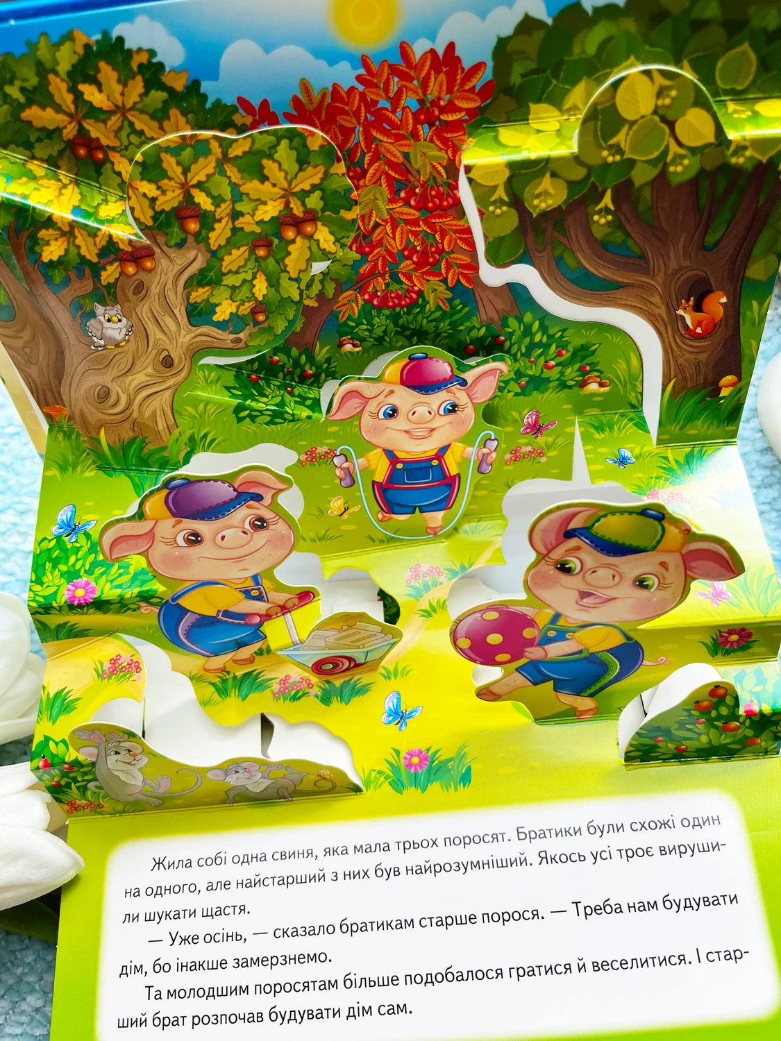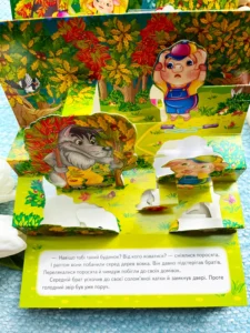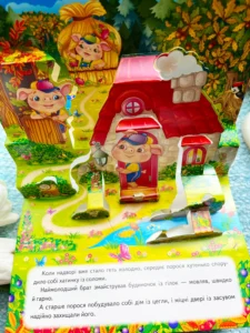 Казка «Троє поросят» з об’ємними панорамками – справжня подорож у дивовижний світ трьох сміливих поросят і хитрого вовка!