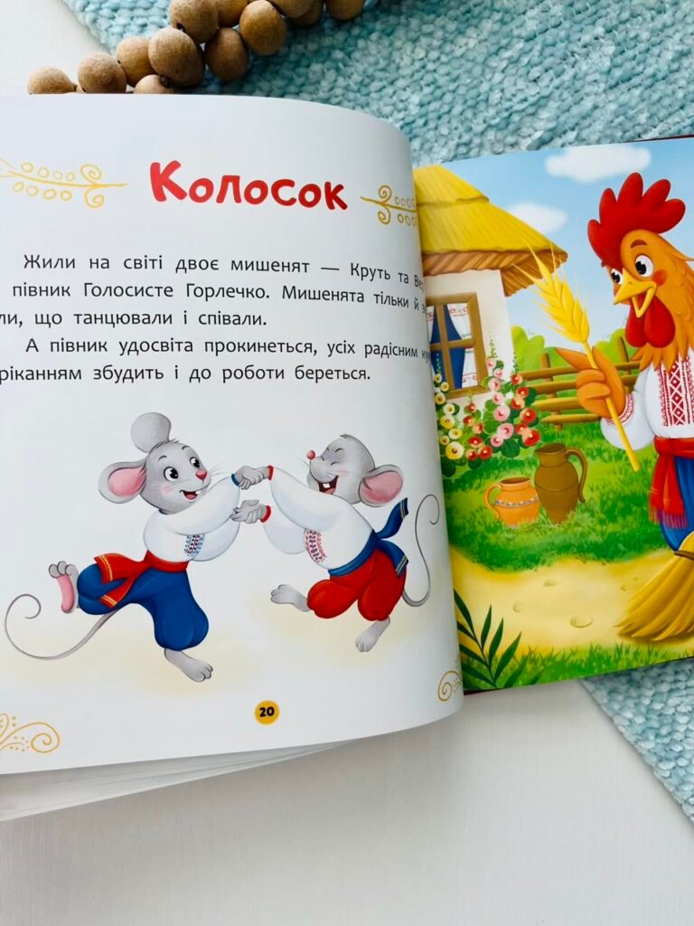 Українські народні казки — це скарбниця простих істин, які зберігалися й передавалися з покоління в покоління. У цих історіях добро завжди винагороджується, лінощі мають наслідки, кмітливість рятує з біди, а підтримка й дружба допомагають долати найскладніші ситуації. Ця книжка створена саме для малят і містить шість улюблених казочок: «Рукавичка», «Котик і Півник», «Івасик-Телесик», «Котигорошко», «Солом’яний бичок», «Колосок».