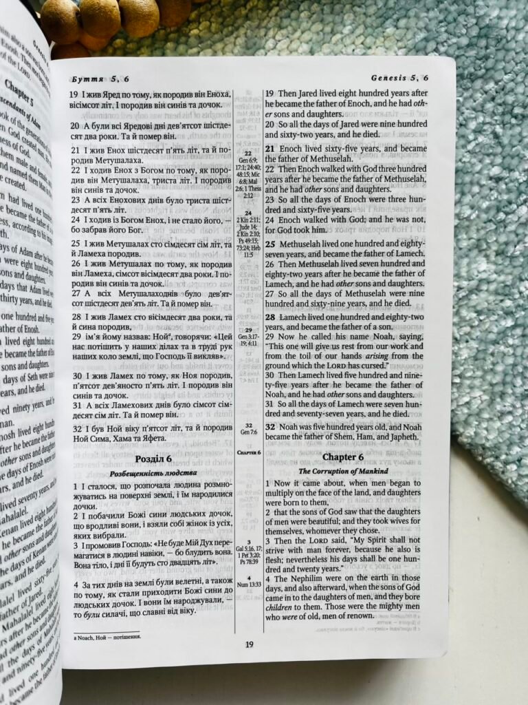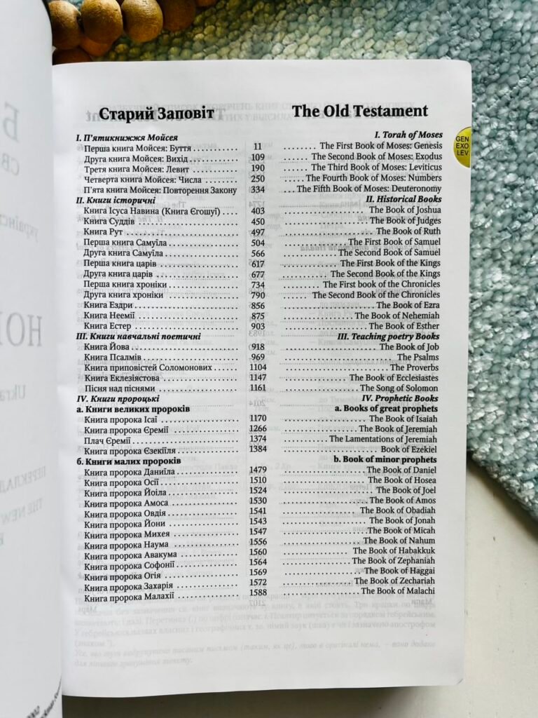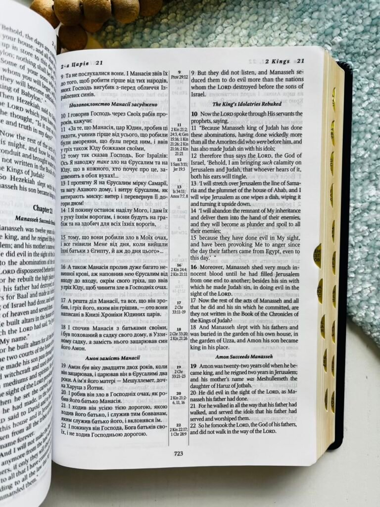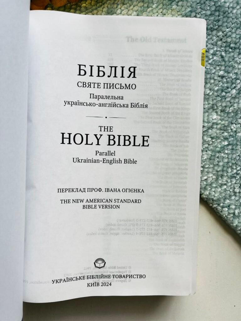 Українсько-англійська Біблія з паралельним текстом, що містить канонічні 66 книг.