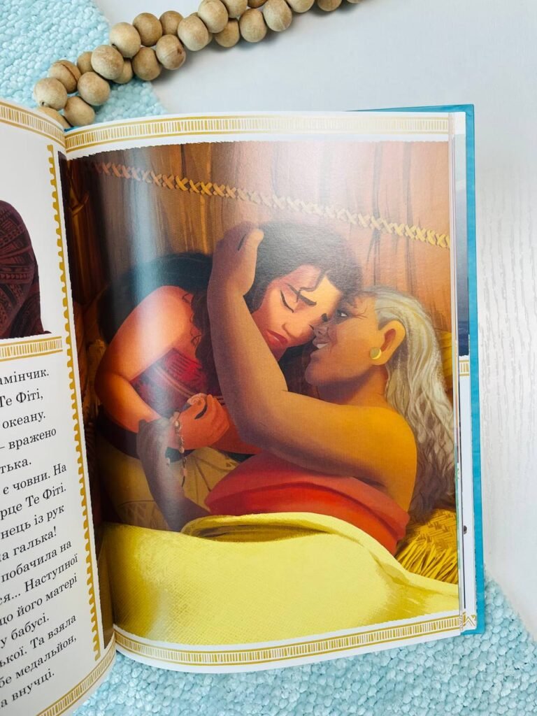 Зрештою Ваяна, попри заборону батька, вирушає на пошуки Ті Фіті, в дорозі зустрічає напівбога Мауї, який вміє перетворюватися на тварин – і переживає разом з новим другом безліч вражаючих пригод. Барвисті ілюстрації з мультфільму доповнюють цю захопливу історію.