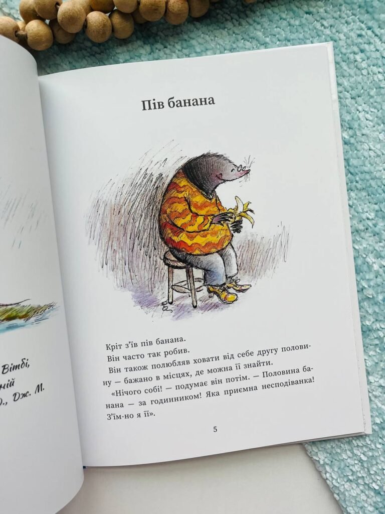 Ця книжка для родинного читання продовжує серію історій про двох друзів — Миша і Крота — відомої британської дитячої письменниці, авторки багатьох бестселерів Джойс Данбар. Спочатку Миш і Кріт засумують, але потім зрозуміють, що прості радощі розвіюють смуток, а в житті бувають речі єдині й неповторні. Та самі Миш і Кріт, якщо подумати, теж такі!