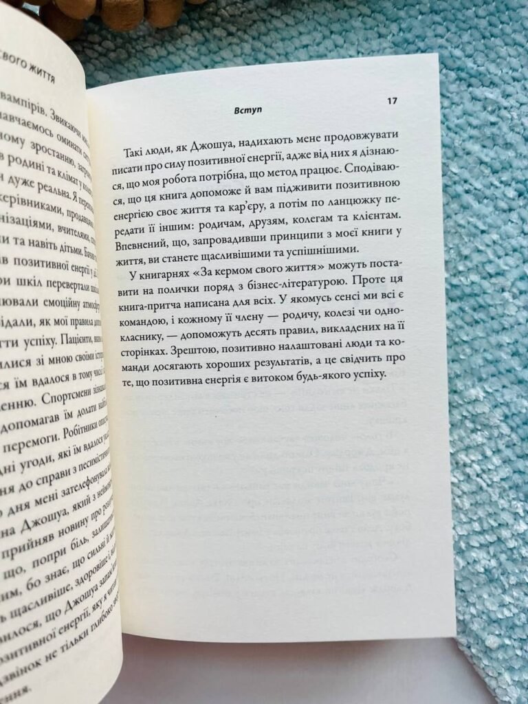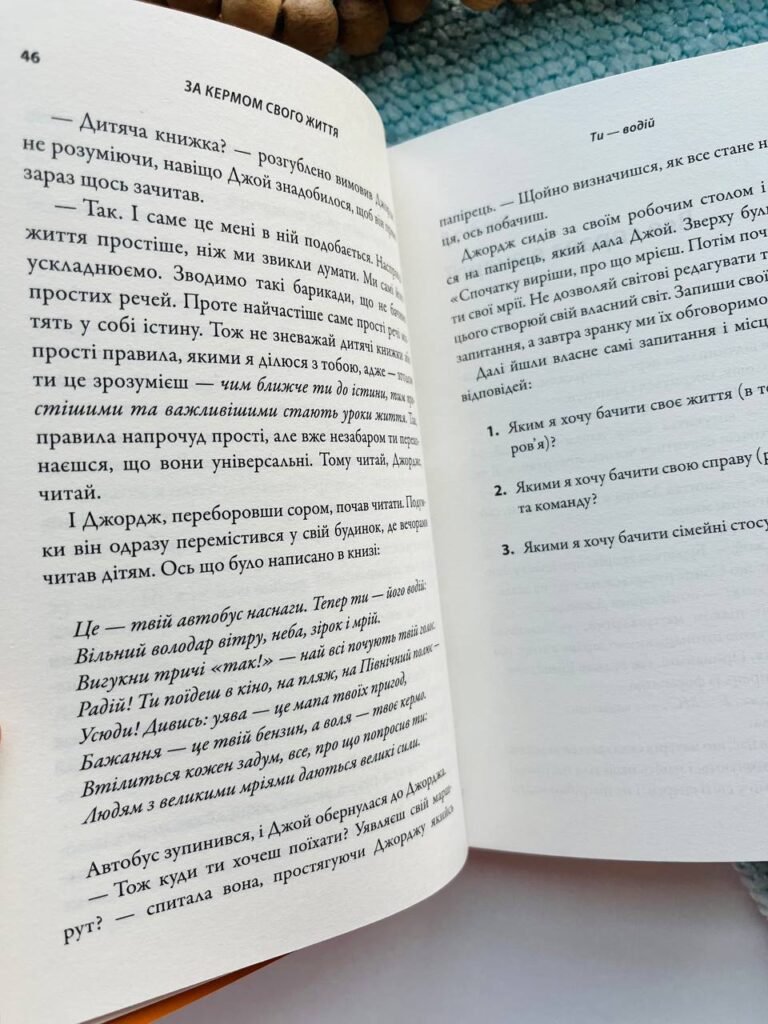 «За кермом свого життя» — книга-притча, яка вже змінила долю багатьох тисяч людей у всьому світі. Її в однаковій мірі хвалять спортивні тренери та президенти всесвітньовідомих компаній, менеджери і вчителі, футболісти і домогосподарки. Автор розповідає про складні речі настільки простою мовою, подає комплексні ідеї у такій дохідливій та лаконічній формі, що вони закарбовуються на підкірці головного мозку, аби сплисти читачеві на розум у той момент, коли у його житті виникне відповідна ситуація.