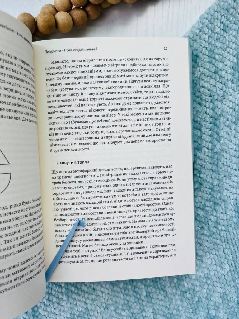 Ця ж книжка розкриває ті питання, які так і не зміг свого часу розкрити Маслоу, та робить деякий перегляд оригінальної піраміди потреб. Сам Маслоу, після інфаркту, переглядав уже власну систему: бо раптом опинившись на самому низу в низці потреб, відчув, що виходить взагалі за їх межі.