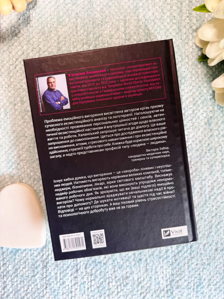 Існує хибна думка, що вигоряння — це «хвороба» лінивих і неуспішних людей. Натомість вигоряють керівники великих компаній, топменеджери, бізнесмени, лікарі, зірки світового масштабу. Виснажує надмір робочих обов’язків, які вони виконують упродовж ненормованого робочого дня. Як зрозуміти, що ви (ваші підлеглі) емоційно вигоріли? Чому нормально зраджувати начальникові надії та прохати про допомогу? Де шукати мотивації та щастя під час війни? Відповіді — на цих сторінках. А ваш піковий рівень стресостійкості та психологічного добробуту вже не за горами. Про автора В’ячеслав Халанський — відомий психолог та психотерапевт, представник третьої Віденської школи психотерапії.