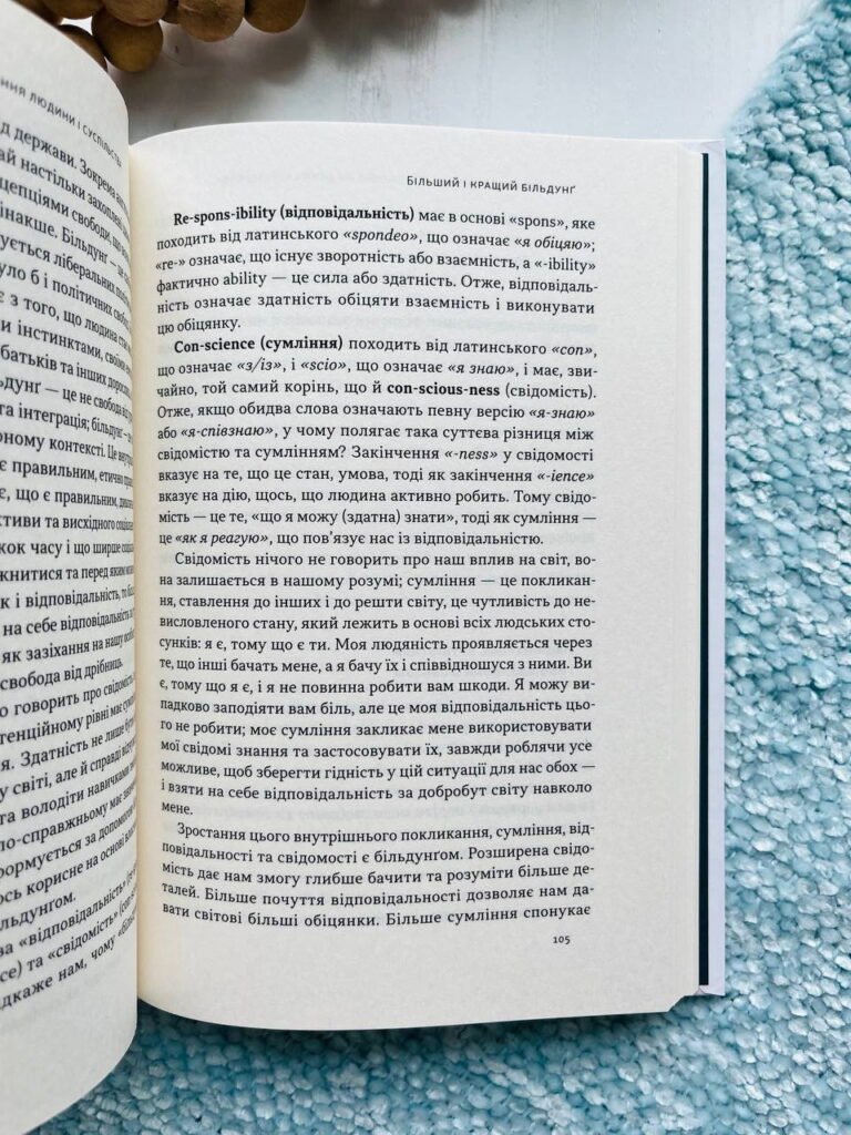 Авторка звертається до понять смислотворення й самоавторства, свободи та відповідальності, важливості не лише теорії, а й практики. Вона показує, як здоровим націоналізмом закласти фундамент демократичної нації. А ще — як з більдунґом для XXI століття можна впоратися з новими викликами, як-от наслідки цифровізації, екологічних проблем, пандемій, міграції, якоюсь мірою — війни.