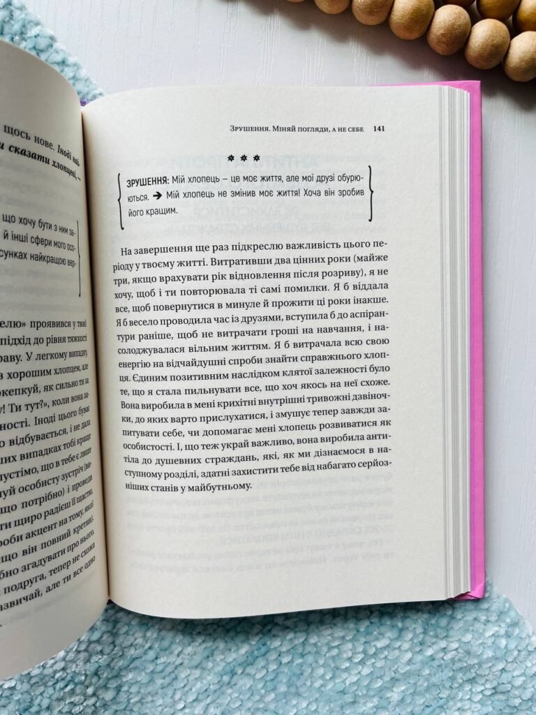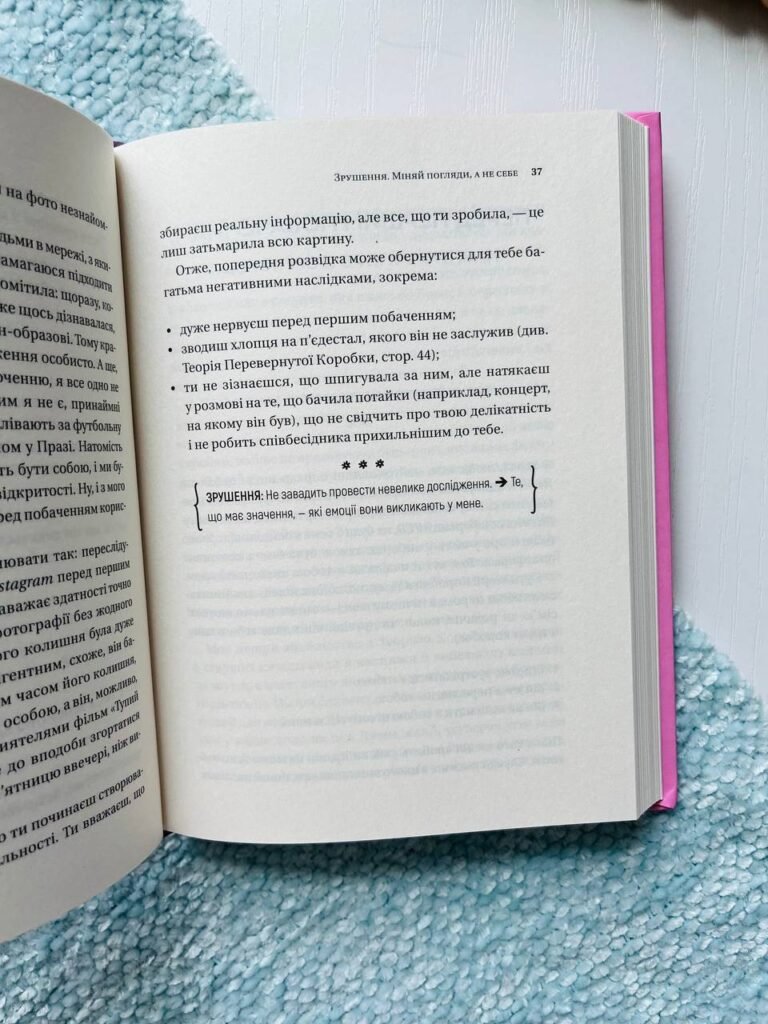 У цьому посібнику авторка на власному прикладі навчає дівчат бути головними героїнями свого життя. Не ідеалізувати кандидатів у партнери та не драматизувати, коли все летить шкереберть. Спокійно відмовляти обранцям, із якими не сталося метчу. Не розчинятися в інших людях, а розвиватися в різних сферах, щоб стати кращою версією себе.