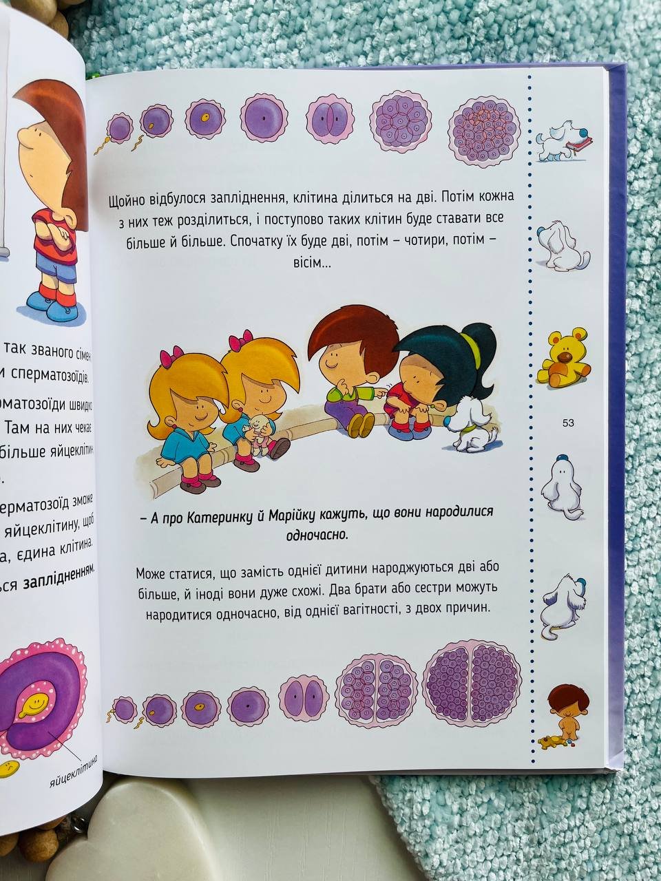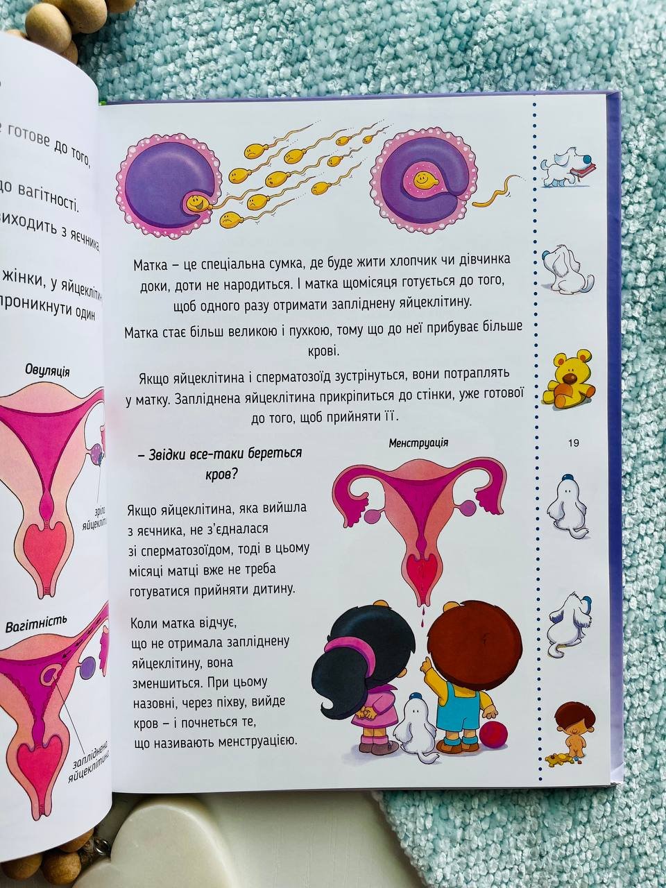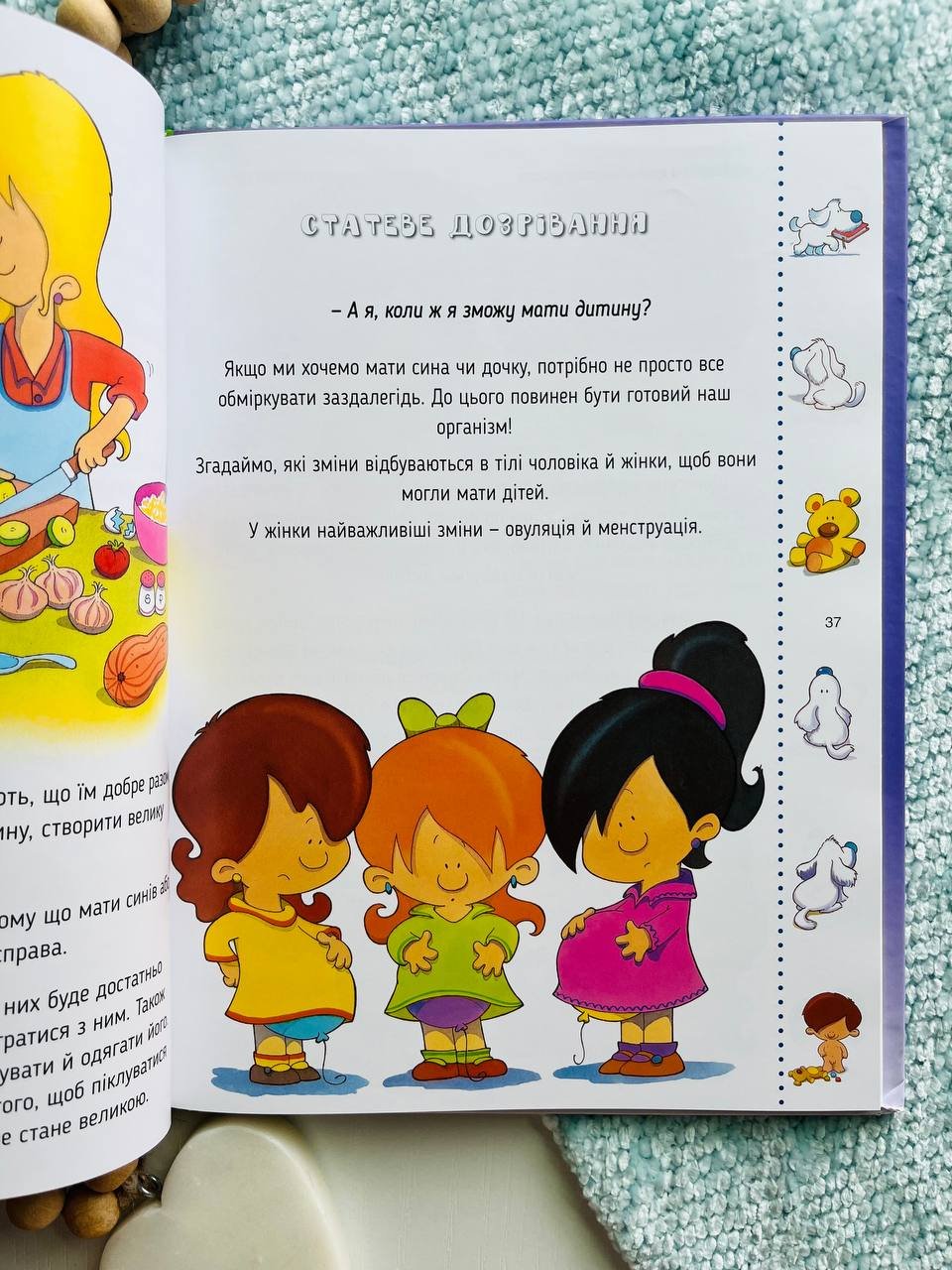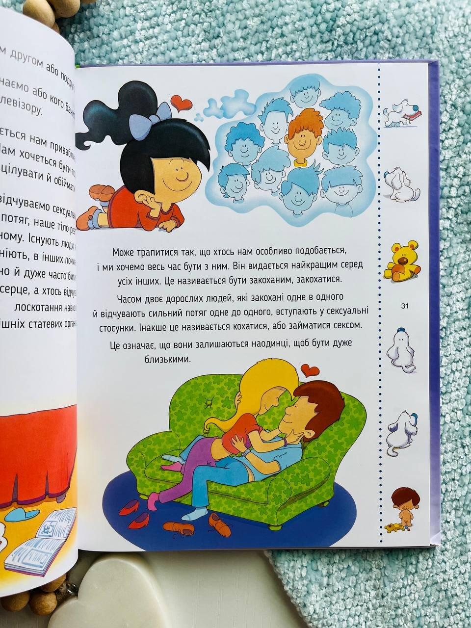 Ваша дитина почала ставити «незручні» запитання? Це змушує вас червоніти? До того ж ви не знаєте, як коректно й правдиво на них відповісти? У нагоді стане ця чудово ілюстрована книжка. У ній доступною мовою роз’яснюються складні поняття: будова статевих органів чоловіка й жінки, вагітність, розвиток і народження дитини, сексуальні стосунки тощо.