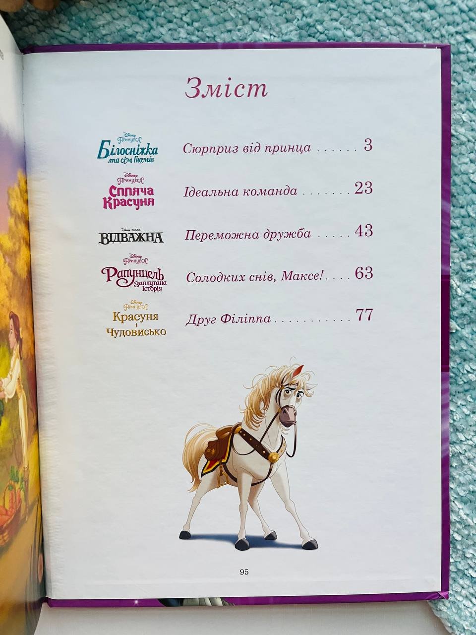 Це колекція казок про улюблених принцес та їхніх бравих скакунів. Чи можна уявити кращий подарунок маленьким шанувальникам мультфільмів і книжок? Під яскравою обкладинкою на малят чекає чарівний світ казки, сповнений справжньої магії та неймовірних пригод.