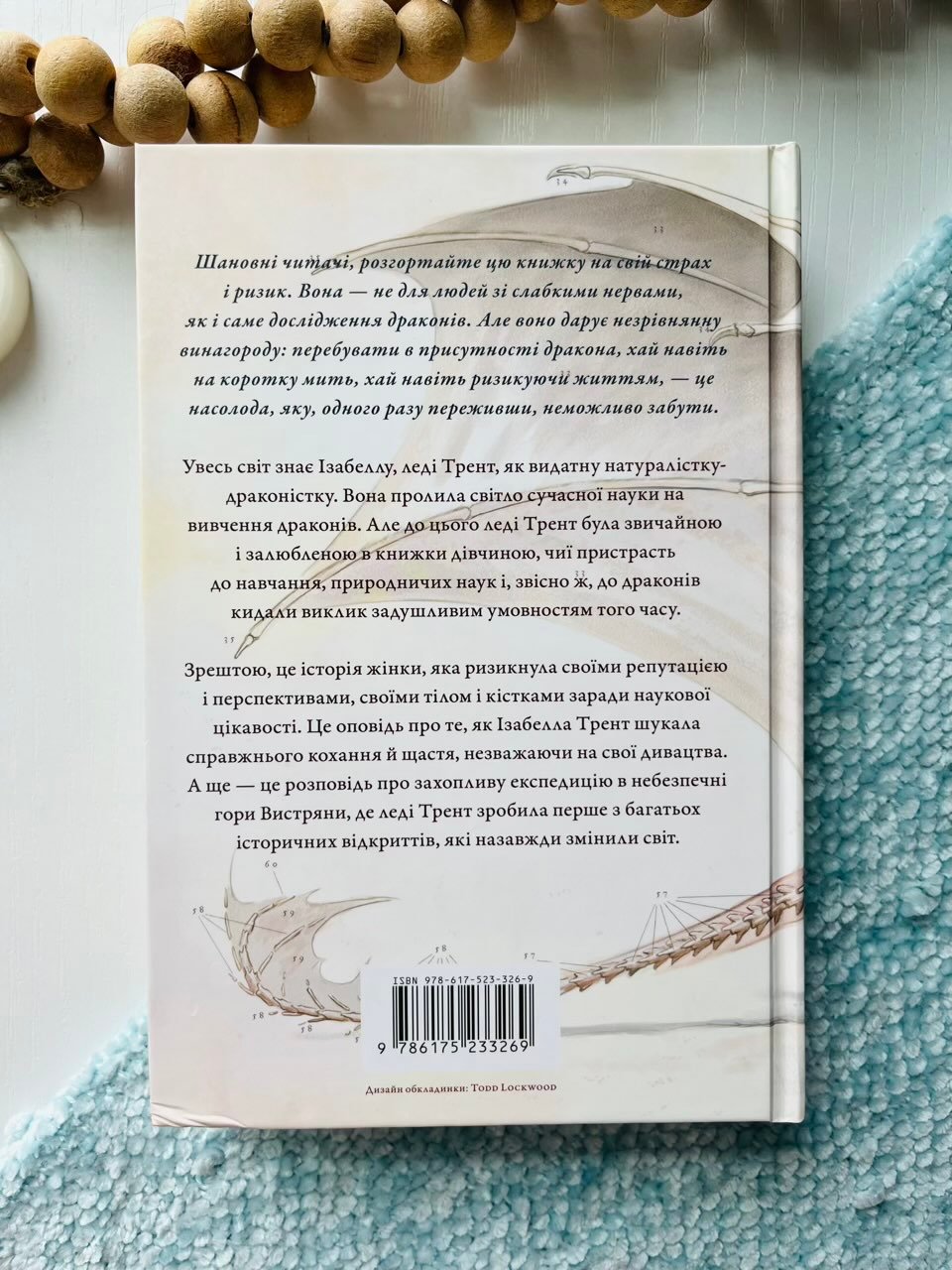 Зрештою, це історія жінки, яка ризикнула своїми репутацією і перспективами, своїми тілом і кістками заради наукової цікавості. Це оповідь про те, як Ізабелла Трент шукала справжнього кохання й щастя, незважаючи на свої дивацтва. А ще — це розповідь про захопливу експедицію в небезпечні гори Вистряни, де леді Трент зробила перше з багатьох історичних відкриттів, які назавжди змінили світ.