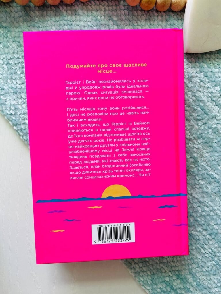 Так і виходить, що Гаррієт із Вейном опиняються в одній спальні котеджу, де їхня компанія відпочиває щоліта ось уже десять років. Не розбивати ж серця найкращим друзям у спільному найулюбленішому місці на Землі! Краще тиждень повдавати з себе закоханих перед людьми, які знають вас як ніхто. Здається, план бездоганний (особливо якщо дивитися крізь темні окуляри, заляпані сонцезахисним кремом)… Чи ні?
