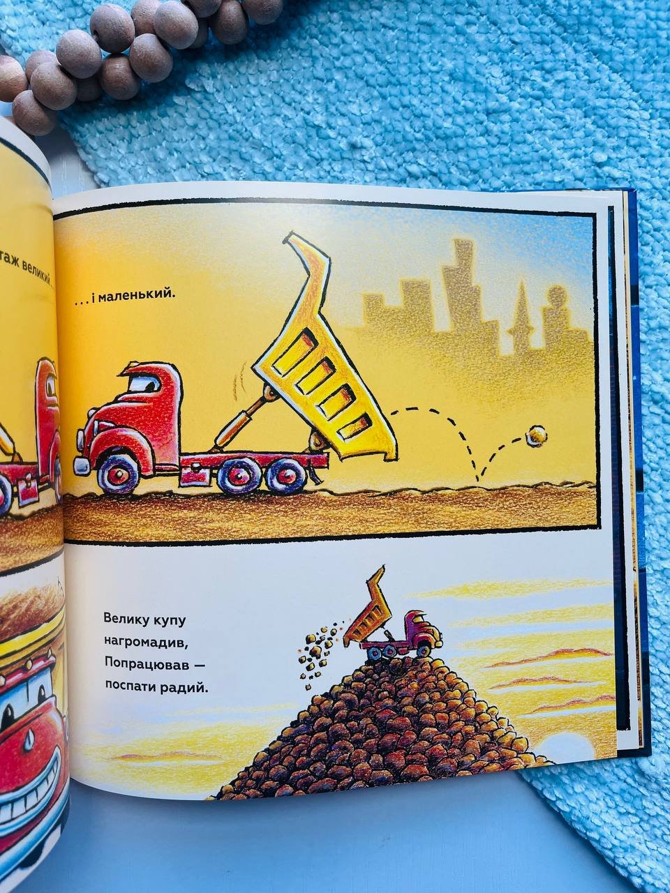 · Завдяки по-дитячому веселим малюнкам будівельних машинок, історія сподобається як хлопчикам, так і дівчаткам.