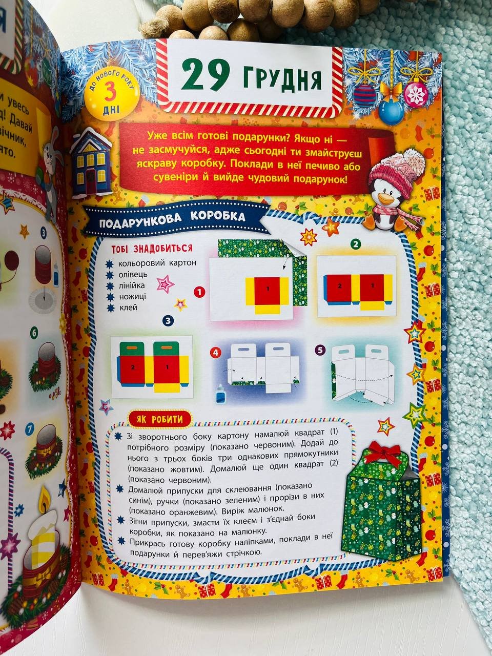 -захопливі завдання на кожен день, які допоможуть малюку підготуватися до свята й створити новорічний настрій;