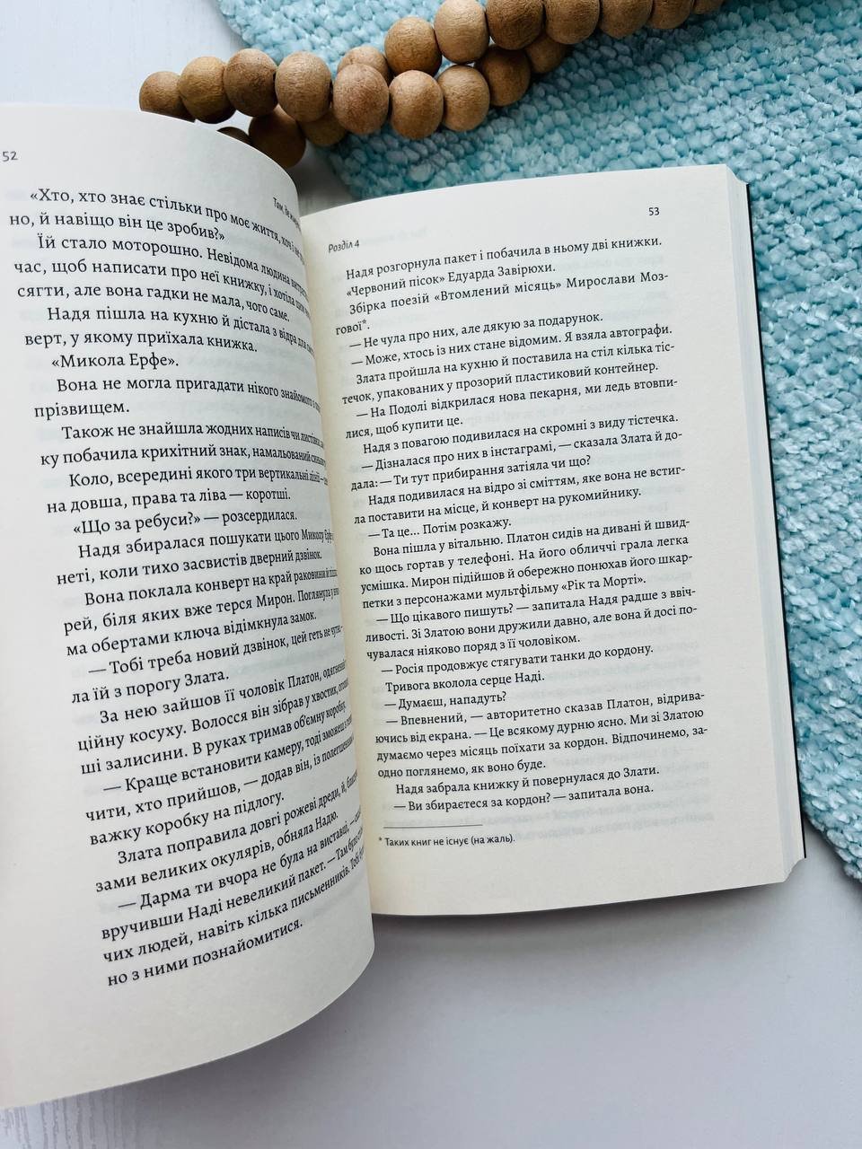 Книжки завжди були її прихистком. Але тепер, коли коронавірус відрізав Надю Книжицьку від світу, а улюблений блог став тягарем, навіть вони не рятують від самотності. Та все змінюється, коли їй до рук потрапляє загадкова книжка – історія від невідомого автора, що детально описує її особисте життя. Спершу це виглядає як злий жарт, але з кожною сторінкою відчуття страху посилюється: цей автор знає те, чого не міг знати ніхто?