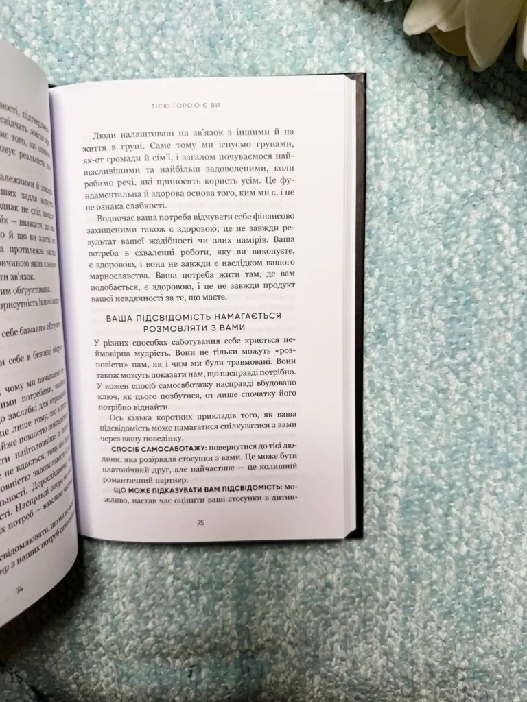 Ця книга стане корисною для тих, хто бажає покращити якість свого життя, зрозуміти свої внутрішні бар’єри і навчитися долати їх шляхом внутрішньої роботи.